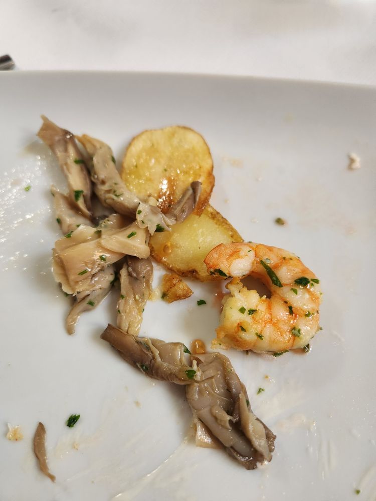 Now it is time for lunch! Perfect follow up to our little wine tasting. We head back to the Monumento al Campesino where we get an up-close look at the beautiful white monument before heading inside the complex to walk around some artisan stores (dyed crafts using the little bugs that produce a red color), soaps, ceramics, etc. – then down into the “lava tube,” complete with circular stairs to a lovely little dining area where we are served a feast. Seriously. A feast I tell you! Anna had told us we’d get some tapas and then fish – but none of us really understood just how much tapas! We started out with a warm roll with mojo sauce, butter and olive oil, moved onto Jamon croquettas (excellent!), then to a tomato and cheese salad that was so fresh and so very good, next up was the sauteed mushrooms and shrimp (again, stellar). We’re all so full it isn’t funny – and all along we have also had unlimited wine pours – of really good Malvesia wine (way better than at the bodega in my opinion!). We’re so used to Gate1 and their 1 glass policy that we are a little surprised, happily, about the non-stop wine pouring – we’ll be napping on the way to our next stop, that’s for sure!