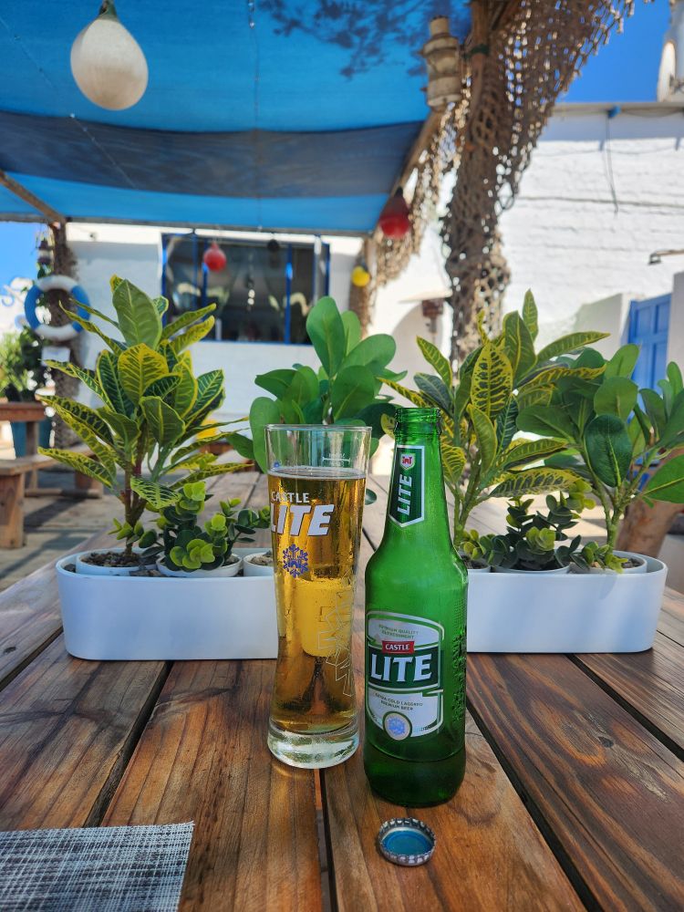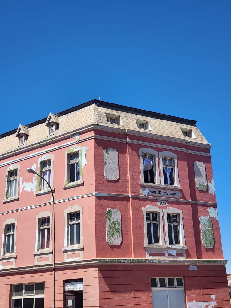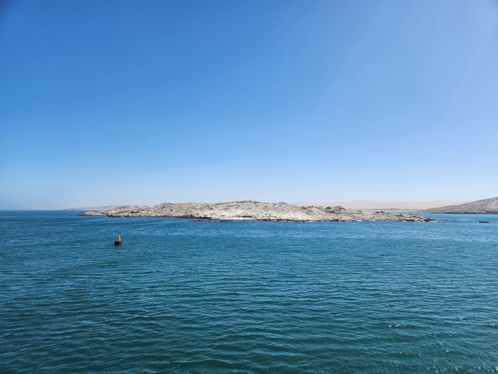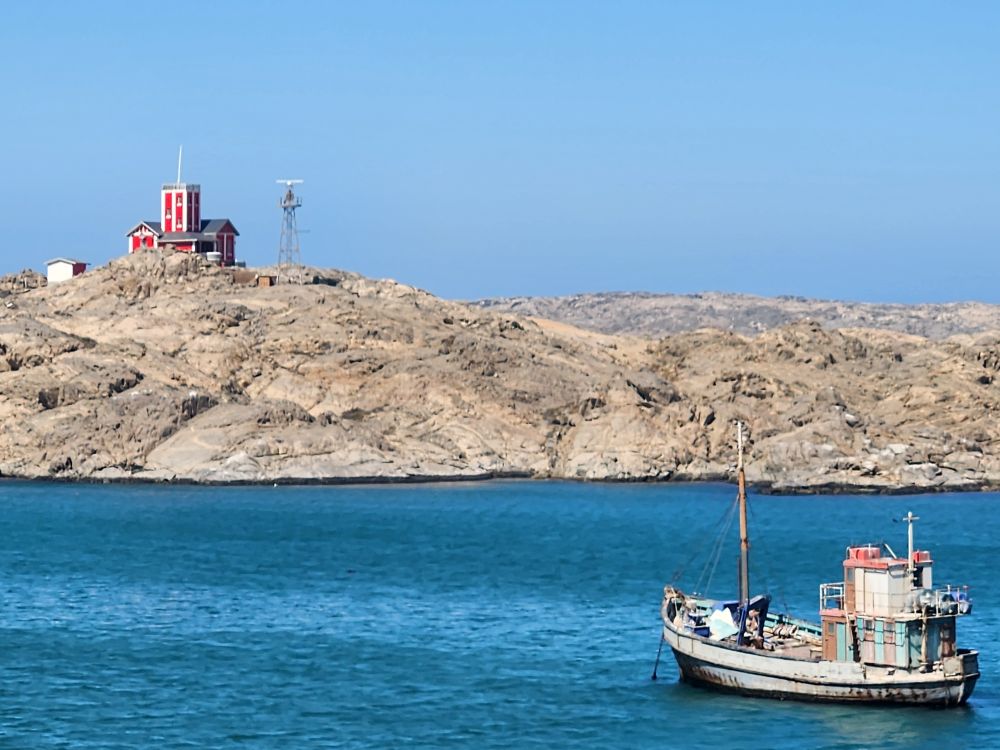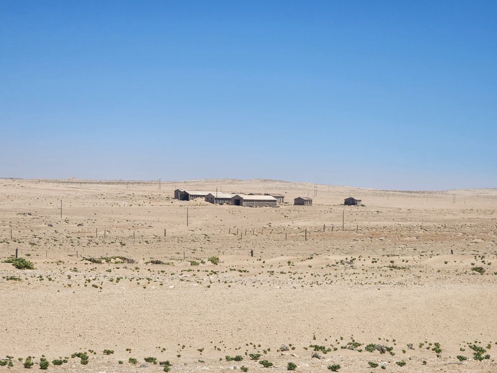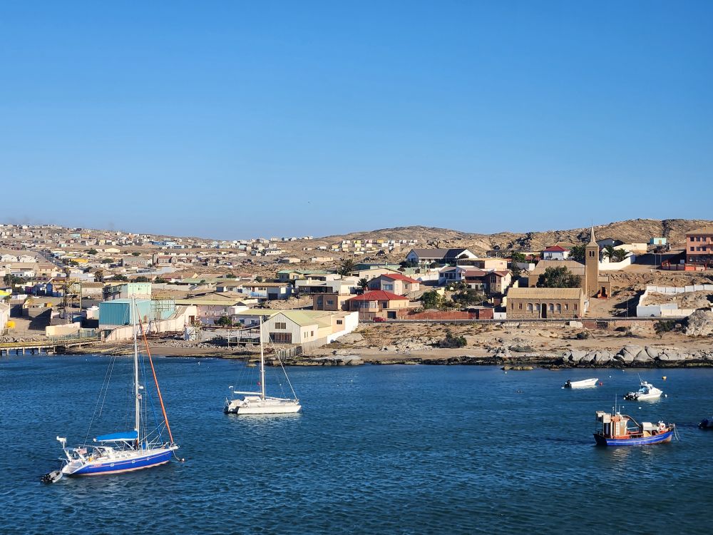 Today, yet another ship’s tour – but it is the easiest way to get to Kolmanskop ghost town that we can find. That is really the biggest thing to see here – there is another tour to see the wild horses, but hey, we’ve seen those in Corolla over the years – and we want to see the abandoned mining town. The only annoying thing is that the tour was originally scheduled for 3:30 and it has been changed to 12 noon – which messes up our original plan to do our own walking tour of the town, eat at the Portuguese Fisherman restaurant, then come back for the tour. So we pivot – normal morning routine, then we grab cold cuts and rolls from the breakfast buffet to have a quick picnic lunch on the balcony before we leave on our tour. Works!