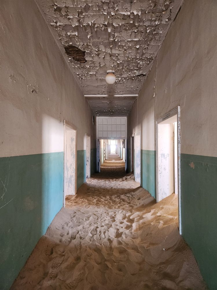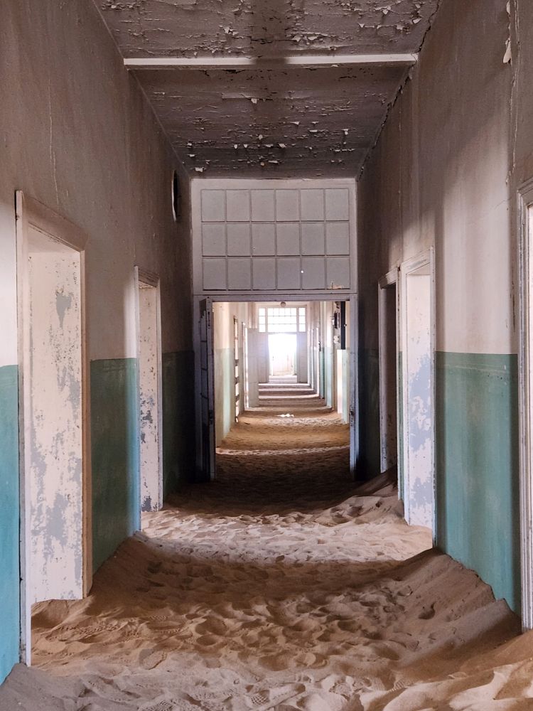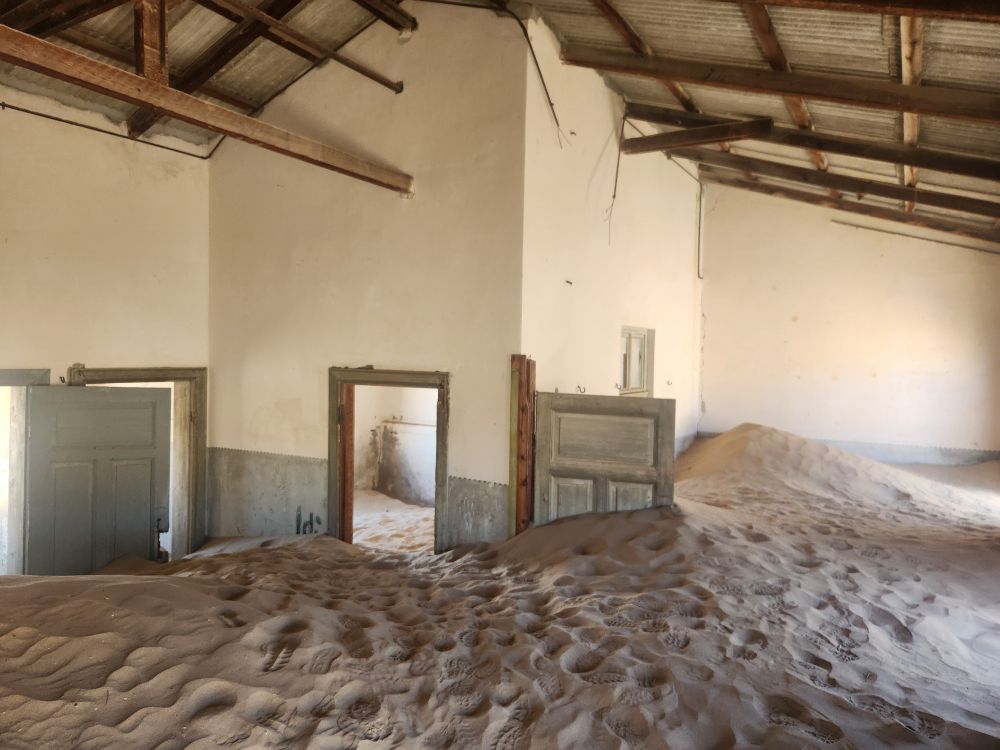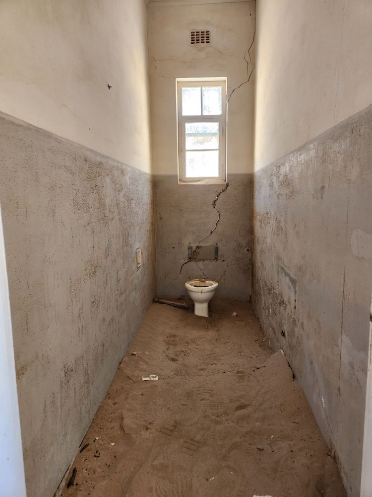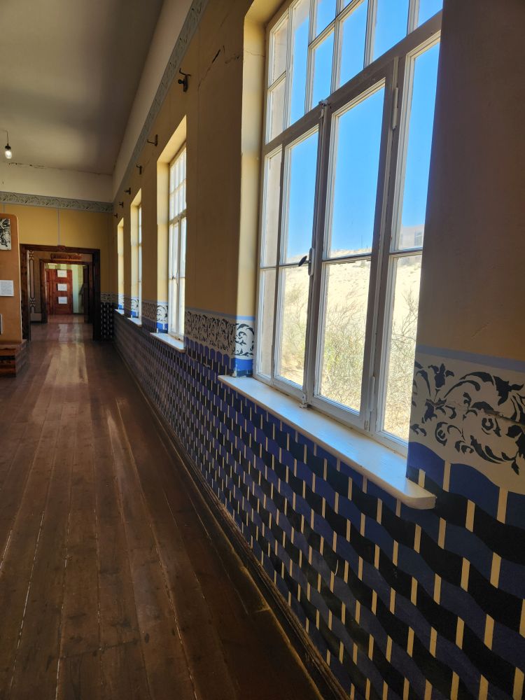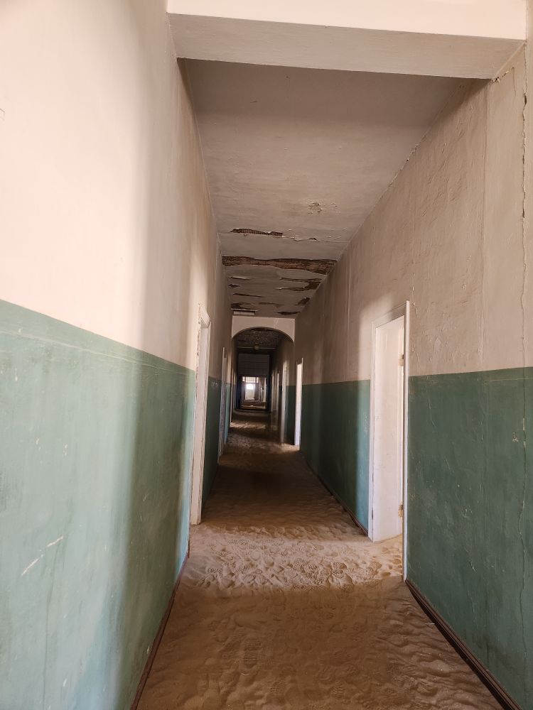 Next we are off to the hospital – which is huge – I don’t know how many rooms are here off this really long central hall. Just from this facility alone you can imagine how huge an operation was run in this town when the diamond rush was on. It’s immense. And also sand filled, badly in some places and not in others. The follies of mother nature.