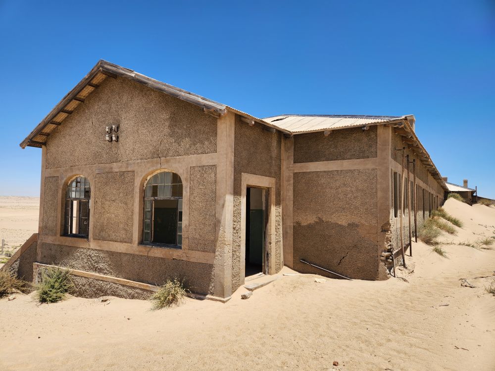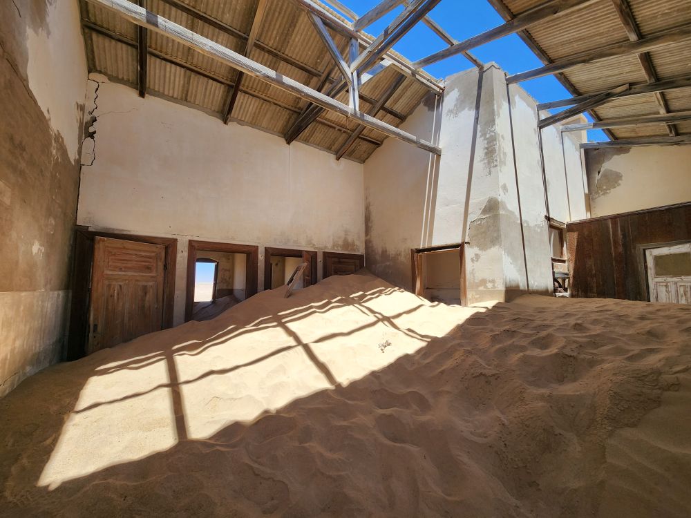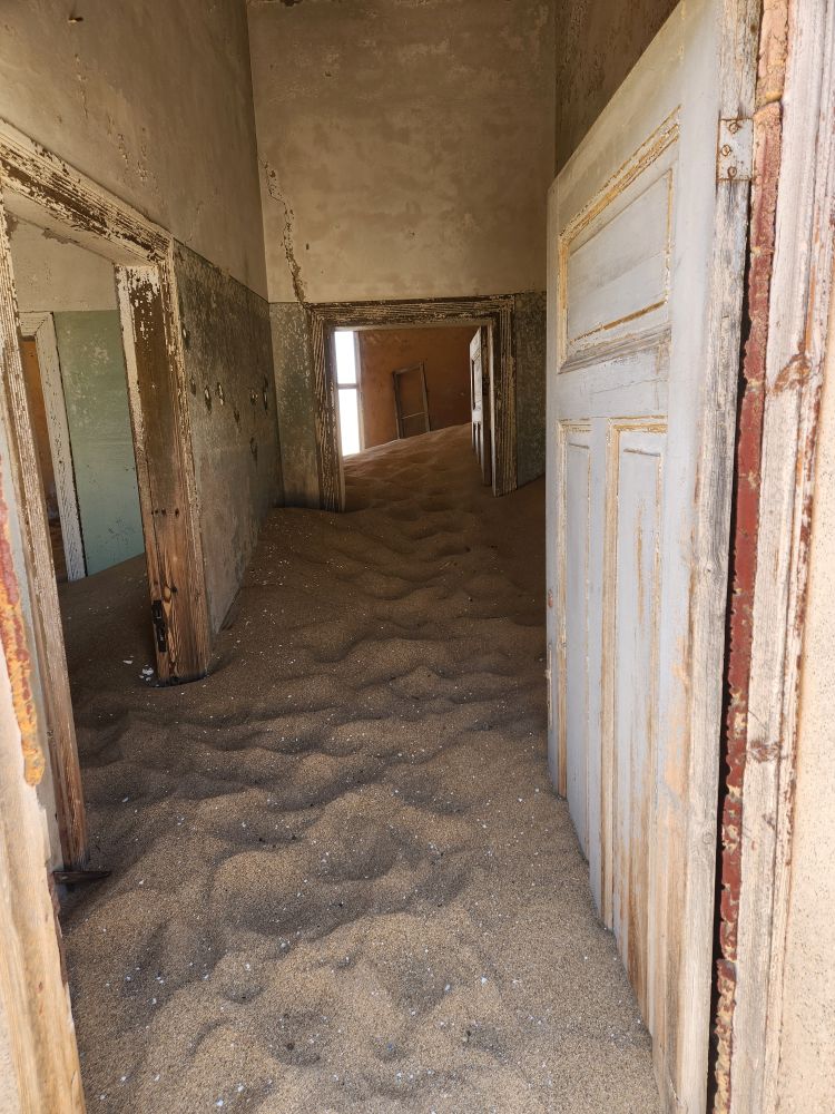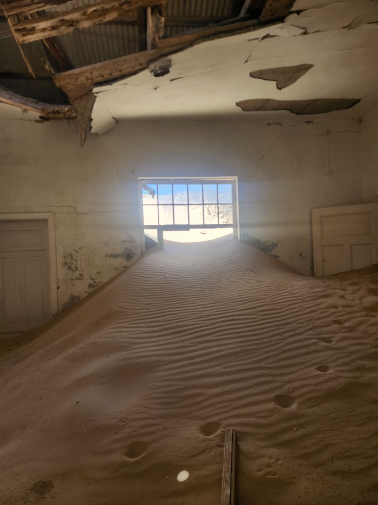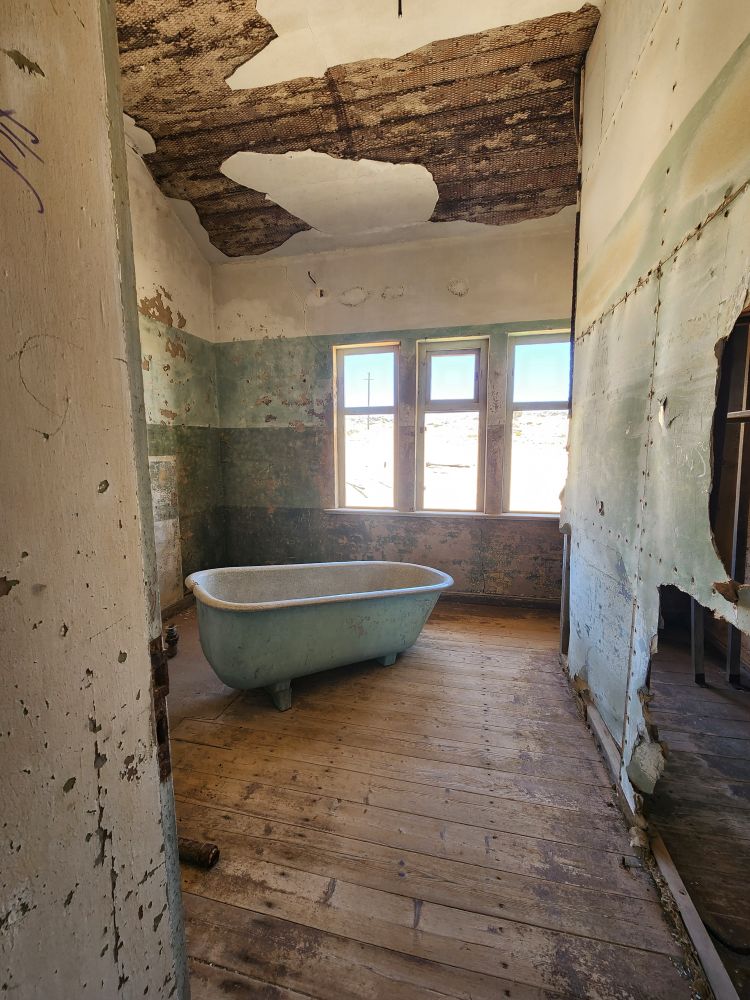 Next we are off to the hospital – which is huge – I don’t know how many rooms are here off this really long central hall. Just from this facility alone you can imagine how huge an operation was run in this town when the diamond rush was on. It’s immense. And also sand filled, badly in some places and not in others. The follies of mother nature.