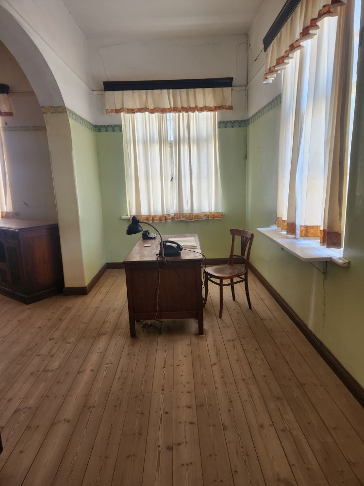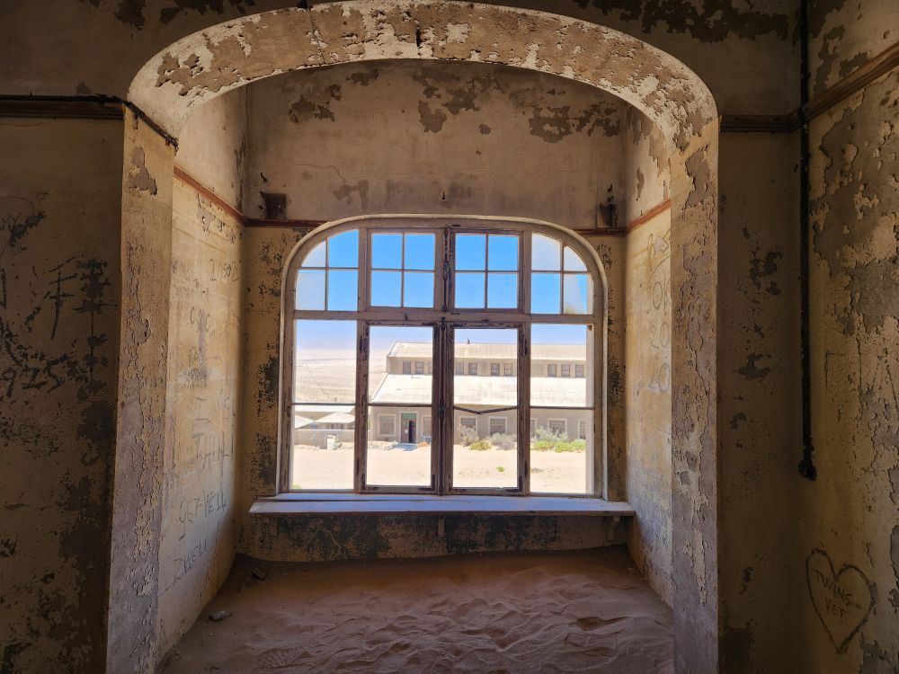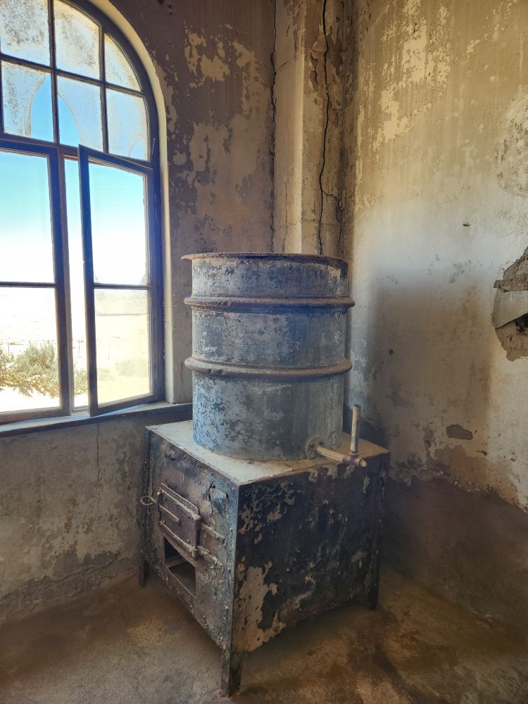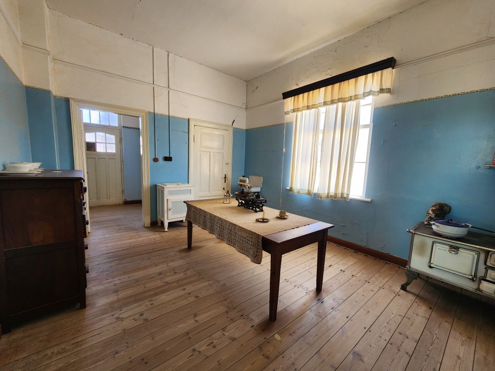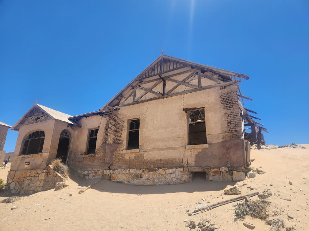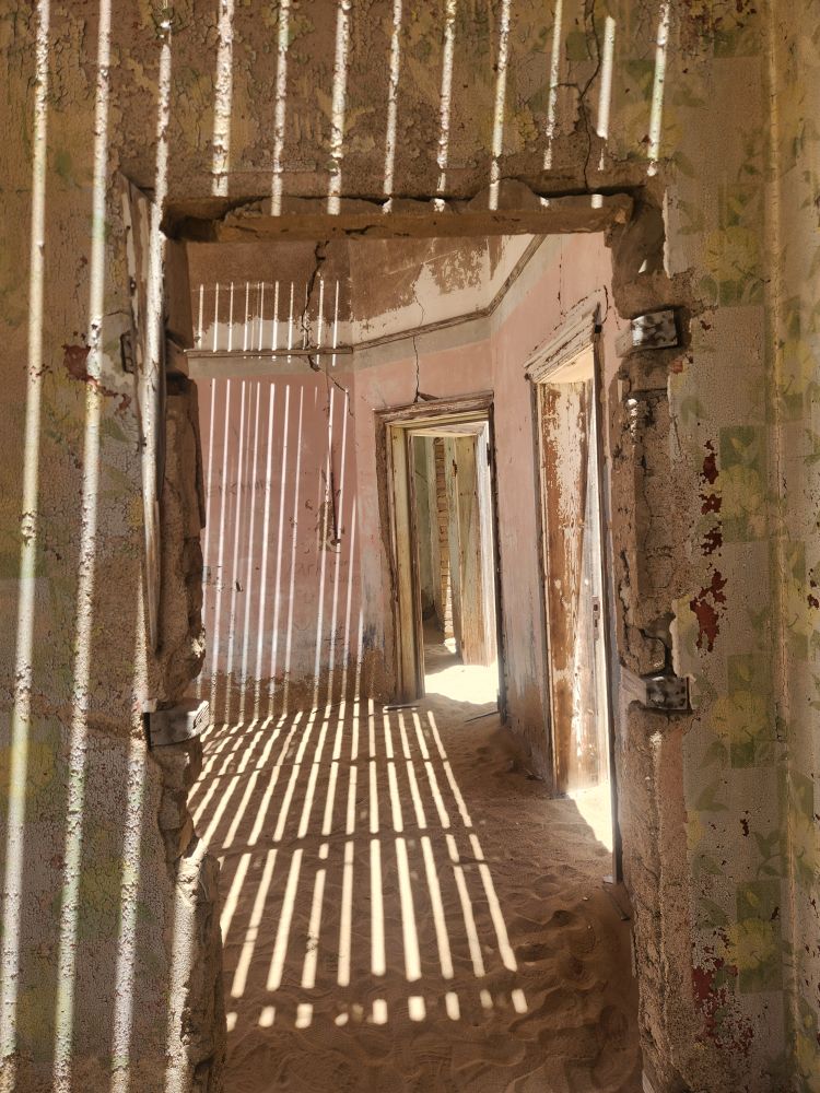 Next we are off to the hospital – which is huge – I don’t know how many rooms are here off this really long central hall. Just from this facility alone you can imagine how huge an operation was run in this town when the diamond rush was on. It’s immense. And also sand filled, badly in some places and not in others. The follies of mother nature.