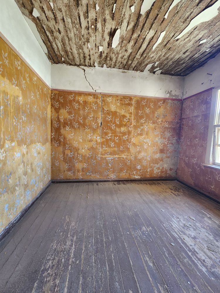 Inside is a glimpse of what was once a grand house and a grand life. High ceilings, big floor length windows, a lovely porch area on the 2nd floor – even wallpaper still on the wall. Really amazing.