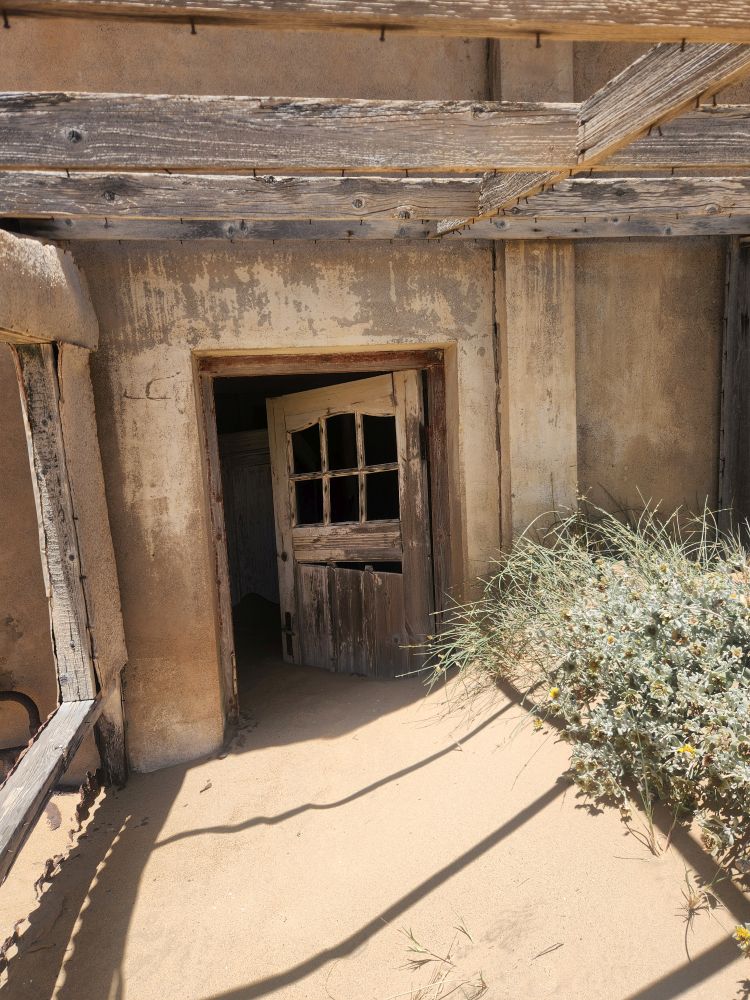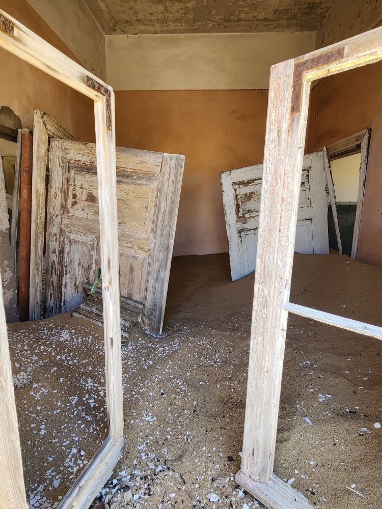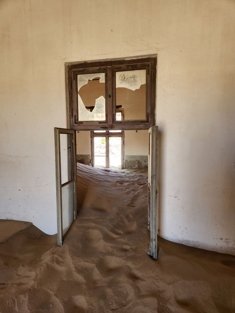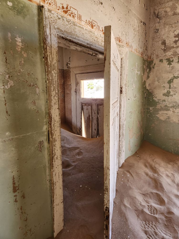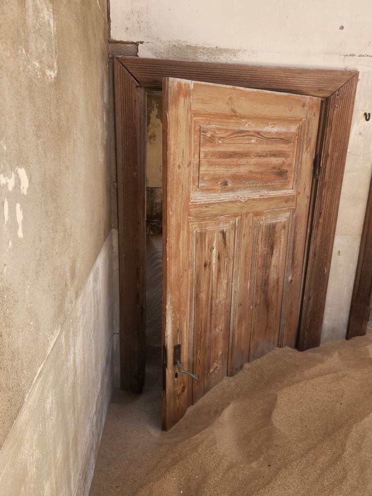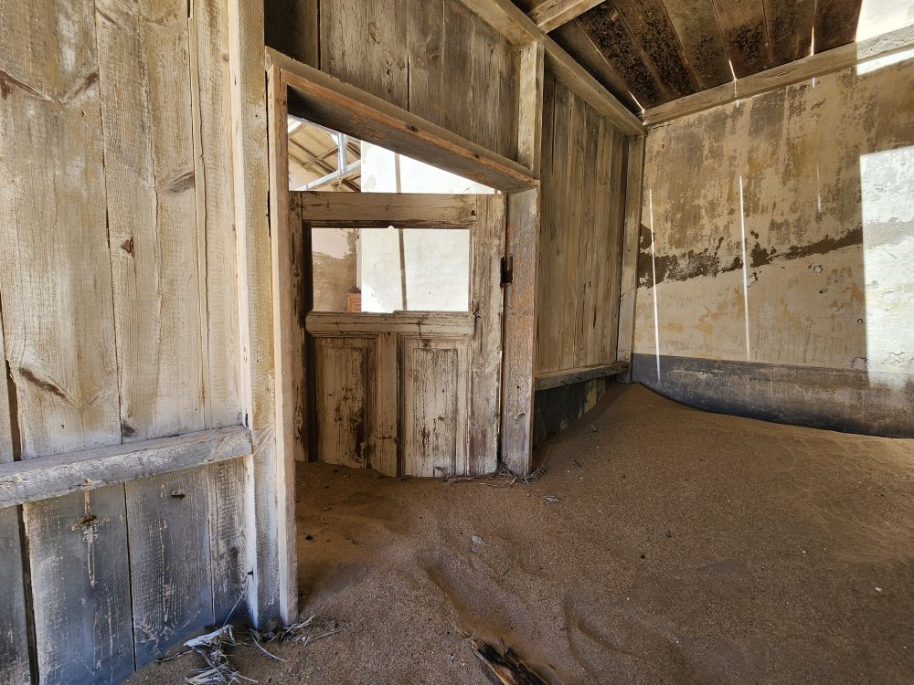 The next house which is where the male workers were housed, is what I’m calling the door house – this is where the sand has drifted so deep it has submerged doors – keeping them standing open for eternity. Again here, access is through window frames and you can’t really go through to other rooms, you have to exit and reenter wherever the sand and the window frame will allow. Equally magical and frightening at the same time!