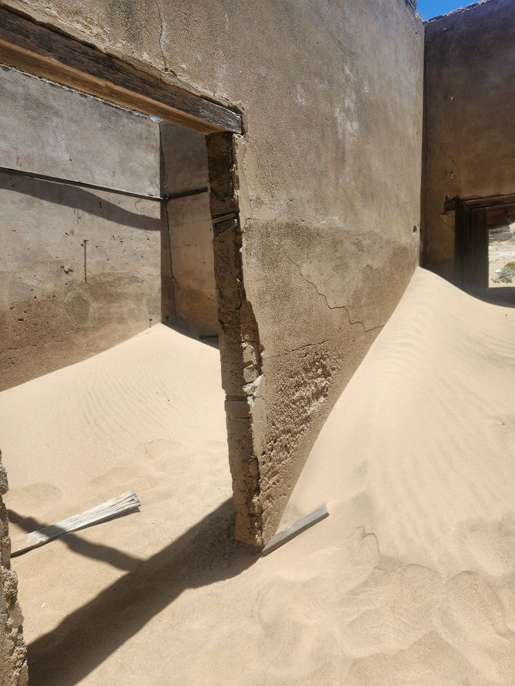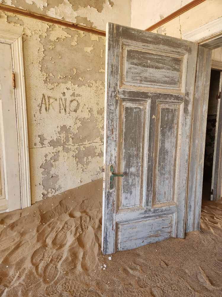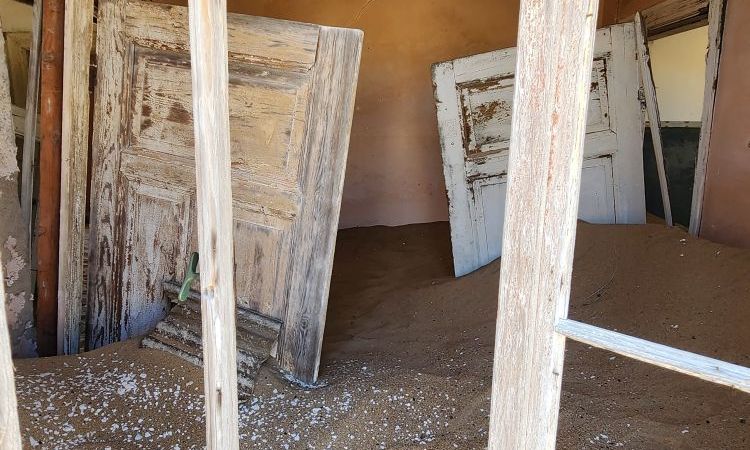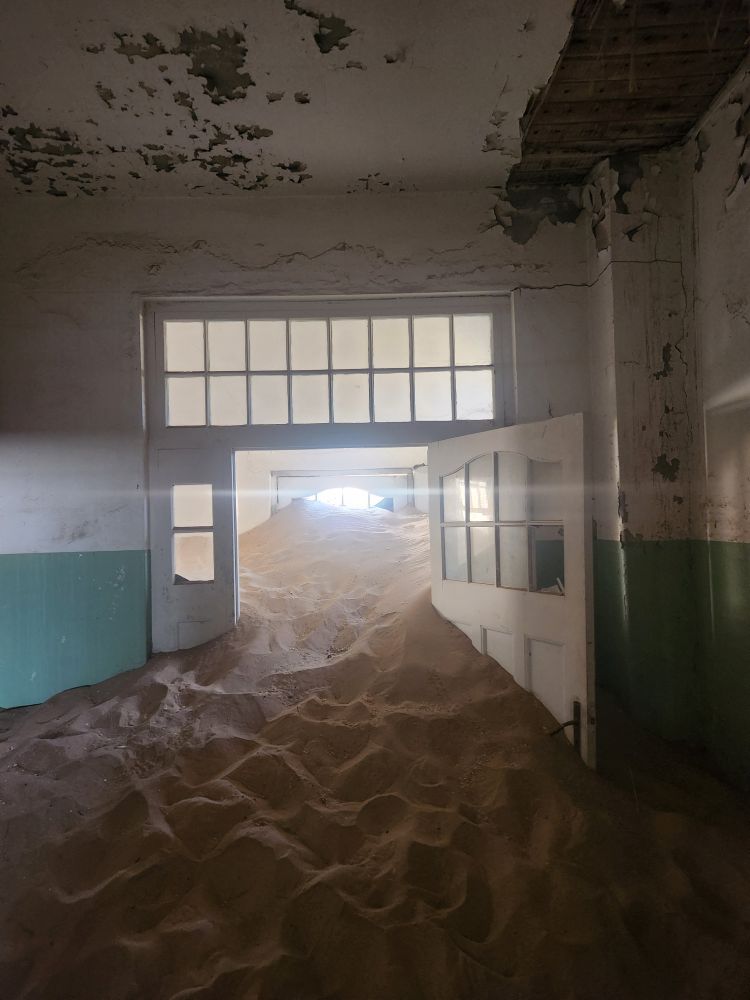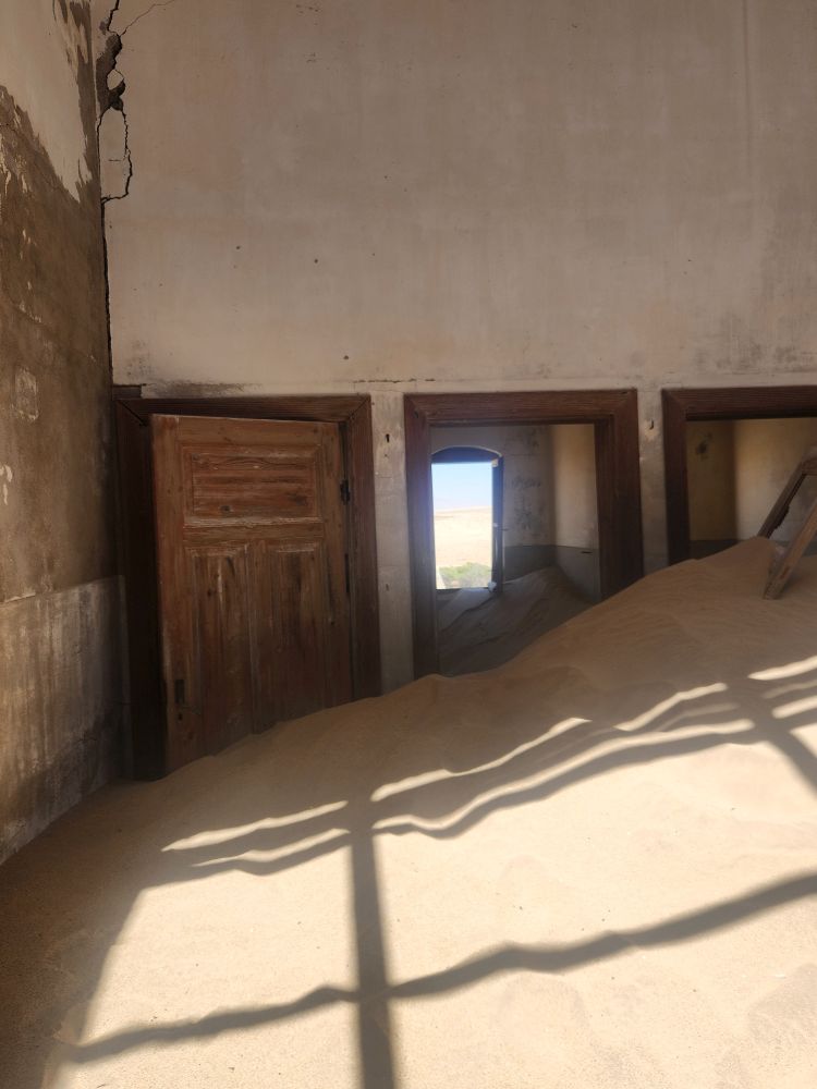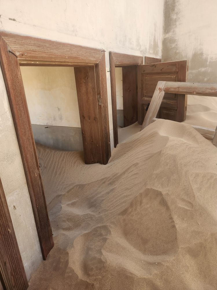 The next house which is where the male workers were housed, is what I’m calling the door house – this is where the sand has drifted so deep it has submerged doors – keeping them standing open for eternity. Again here, access is through window frames and you can’t really go through to other rooms, you have to exit and reenter wherever the sand and the window frame will allow. Equally magical and frightening at the same time!