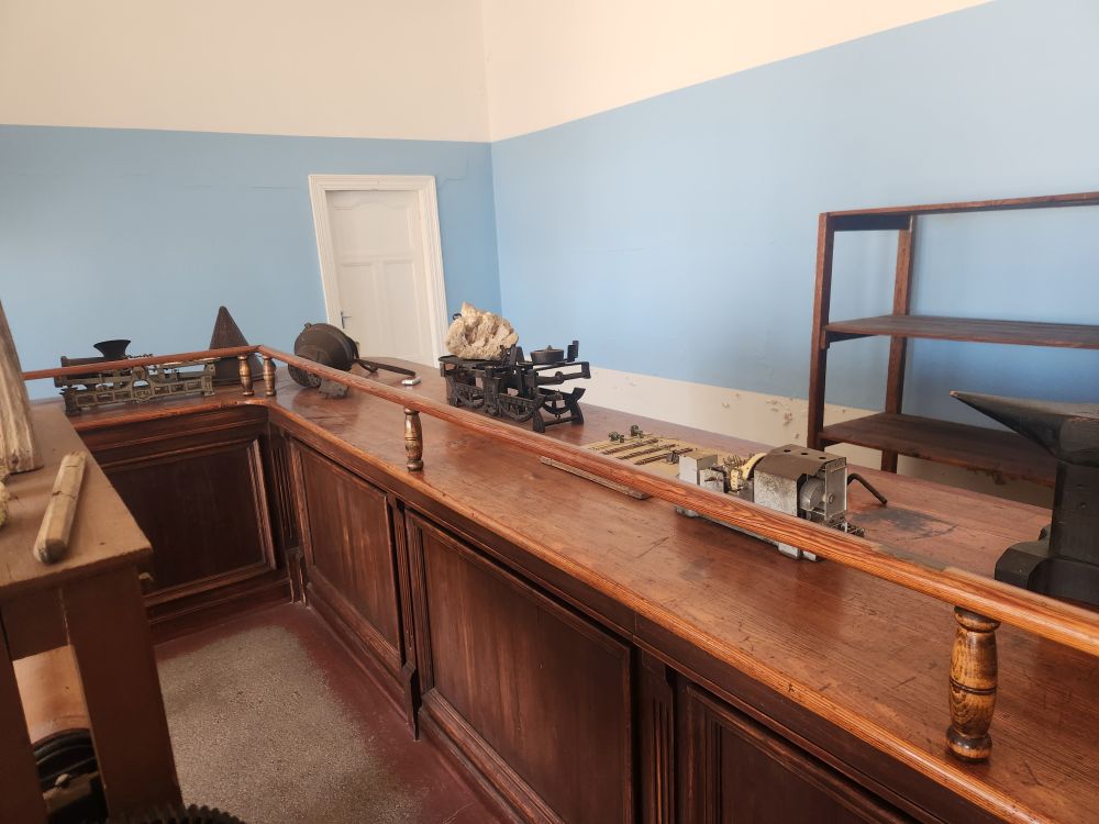 Next we move on to the “casino” which is really the ballroom area. Here the walls have been faithfully restored to how they looked in their heyday and there are lots of historical displays and informational boards. We meander through more large kitchen equipment, displays of old tools and utensils used at the time. Interesting, but the main attraction is outside!