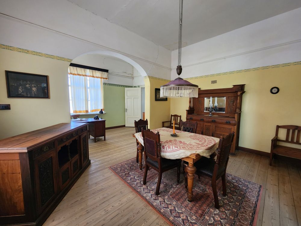 Our last visit is to the retail shop owner’s home, which is a completely furnished place with period pieces. Lovely dark wood furniture, a sweet kitchen and the shop owner’s office, where Mr. Manager gets into the act reviewing the books.