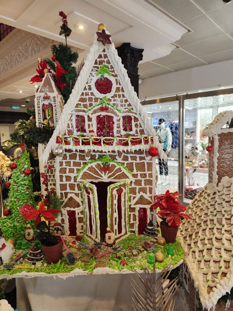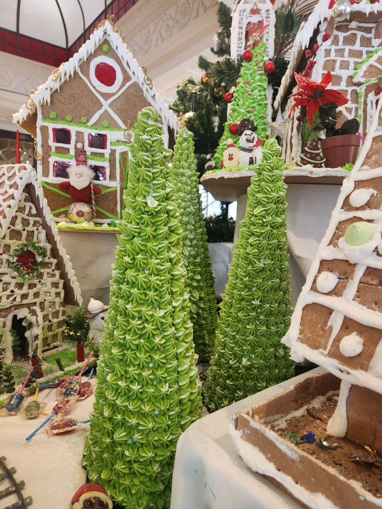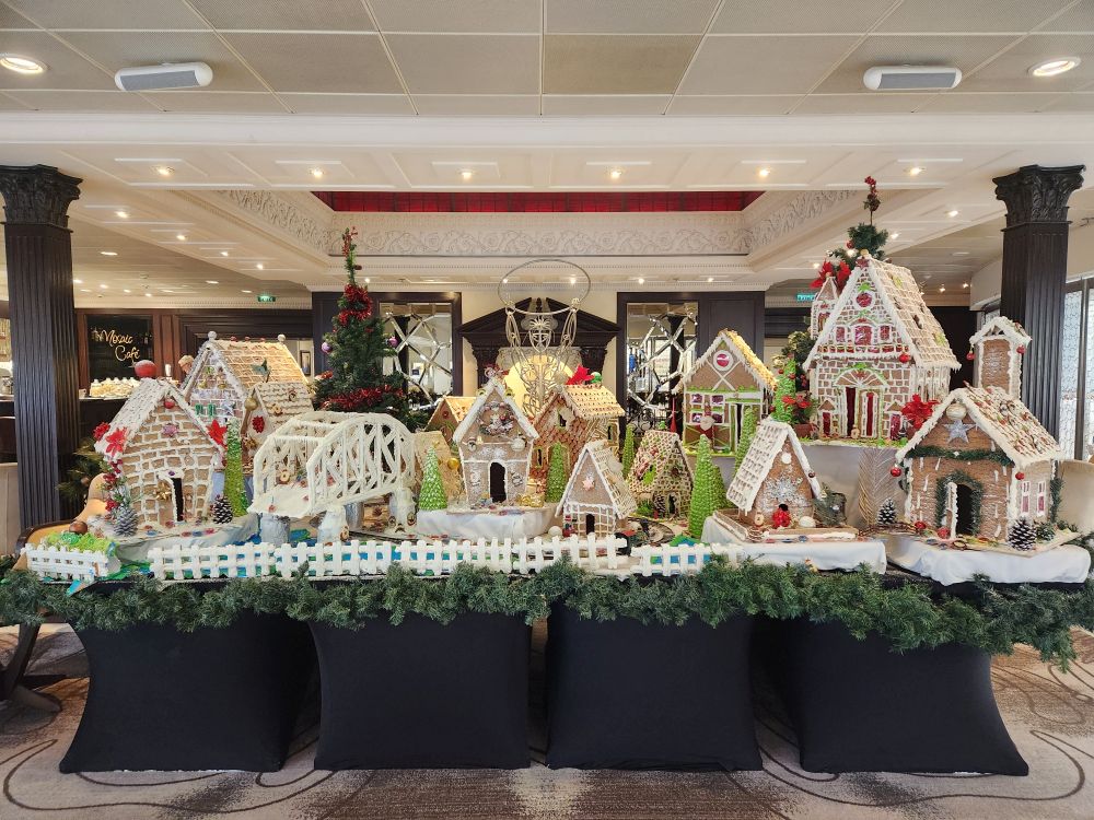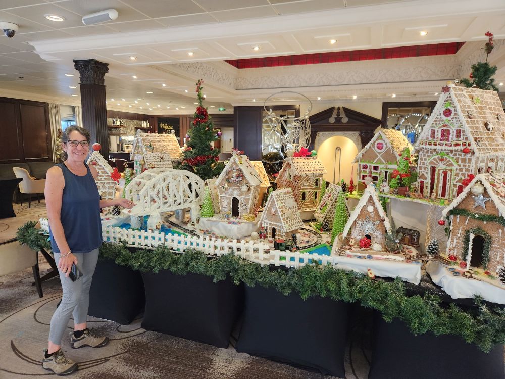Roma had said something about changing the location of the tour due to immigration, and that letters would be sent out last night. But we didn’t get any letters, so we headed down to Shore Ex to figure it out, on our way passing the holiday gingerbread town that has magically sprung up overnight! So cool – now we know why all the chairs and tables from Mosaics have been moved.