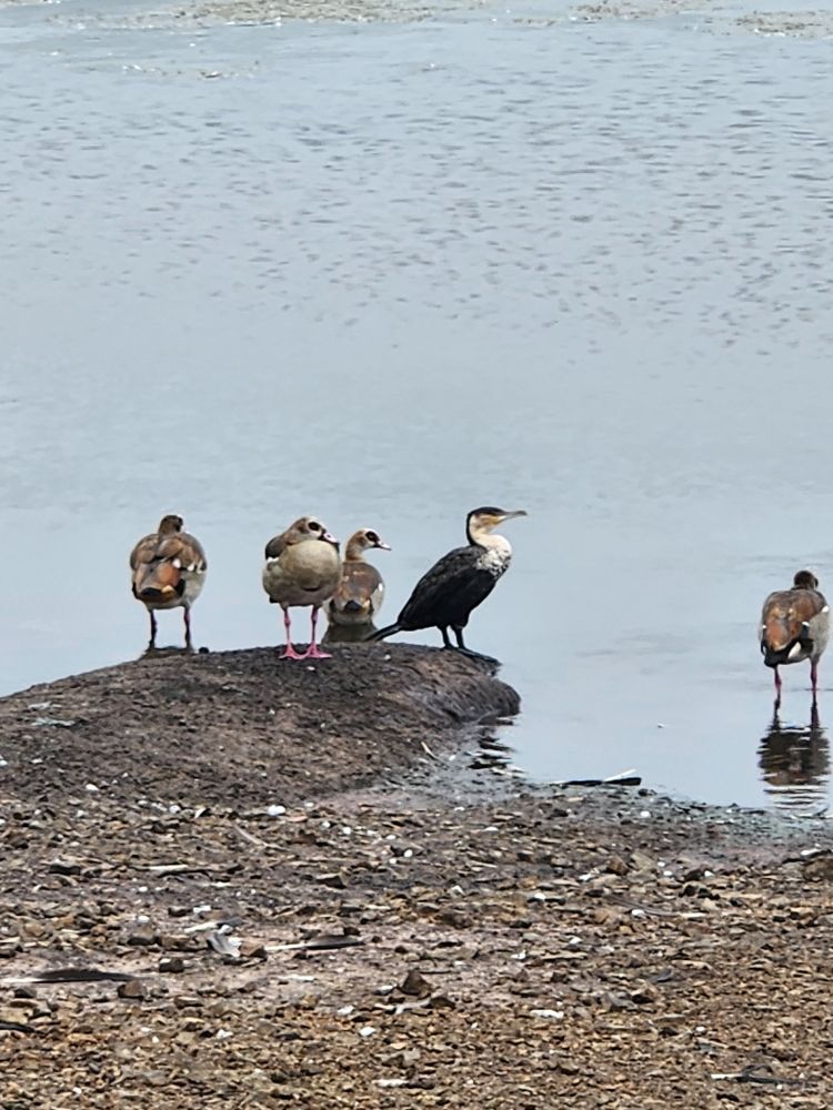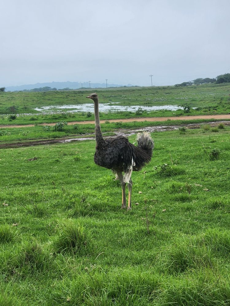 Getting to the lake you can see how wet it is, a huge river of water is running across the road and into a water trench – it is like a waterfall flowing through the marsh. At the lake there are hundreds of ducks and birds all milling about. We are hoping to see a hippo, and there is one in the far, far distance, but no way would we be able to snap a picture! I barely caught him with my on 2 eyes!