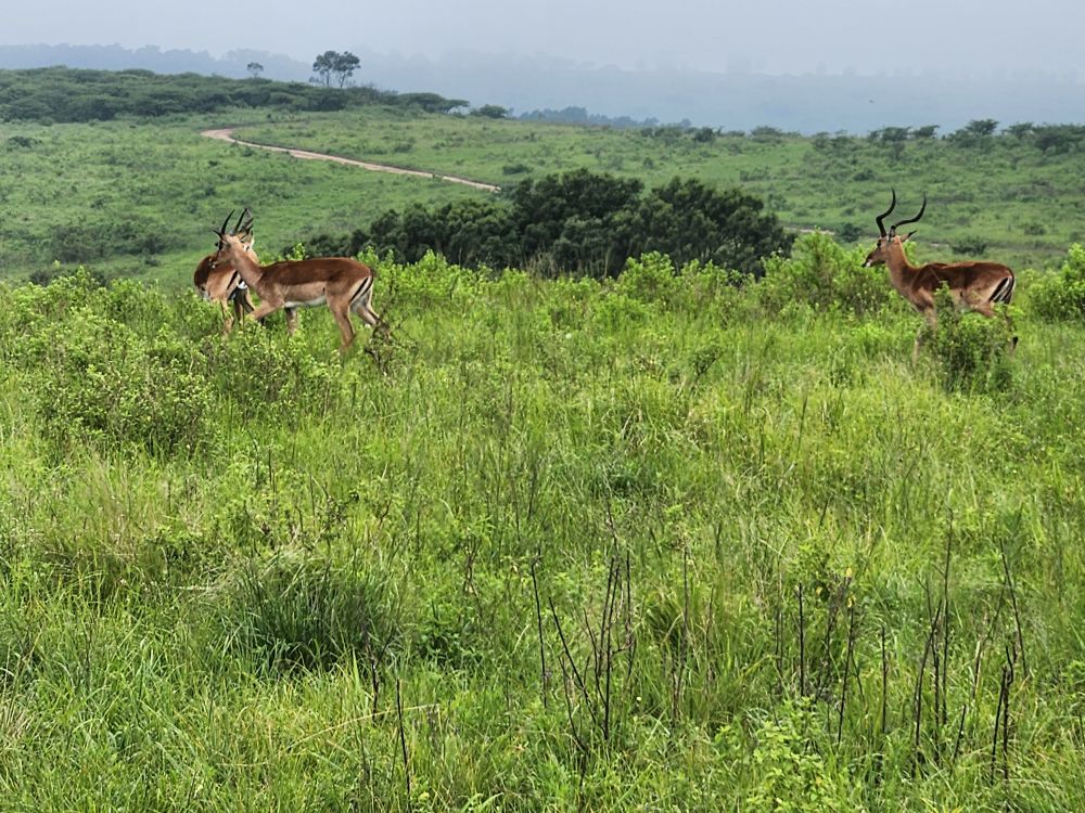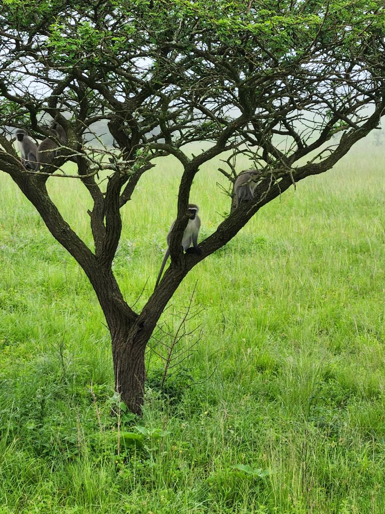Seriously, we stay there for about 40 minutes, they giraffes are that fascinating. And then we are off, getting stuck in the super wet, muddy fields. Obviously there has been a lot of rain here, and the tracks for the vehicles are completely bogged down with mud. After a couple of attempts, our guide successfully gets us out of the bog and we head off toward the lake, in another section of the park, passing vervet monkeys along the way.