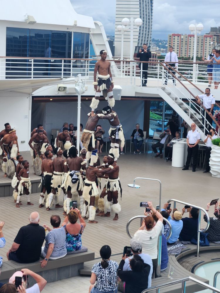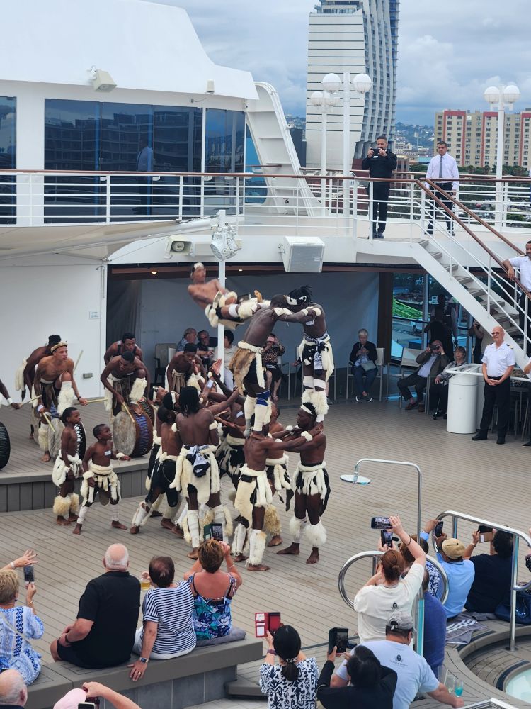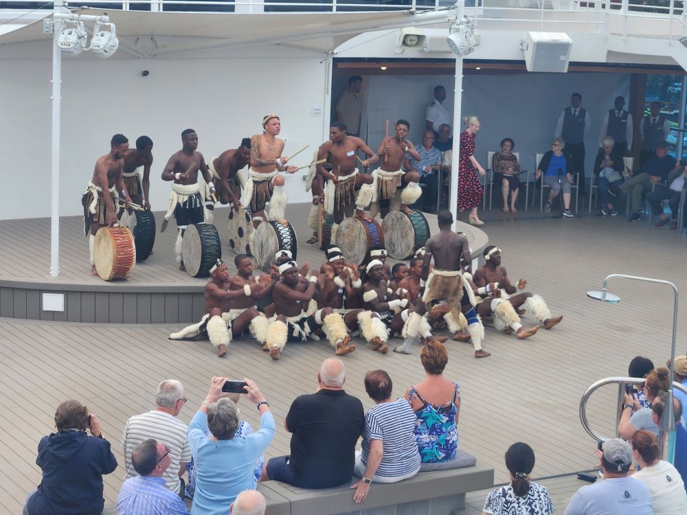 Tonight, after the gym, are the Zulu dancers. This is the same show Quest brought aboard during the COVID cruise. We know from the previous show they are fantastic. And they do not disappoint tonight either. They have the addition of 2 little guys – maybe 7 or 8 or 9? They are amazing – as are all the performers. And as I did the last time, I took tons and tons of photos and tons and tons of videos! How can you resist?