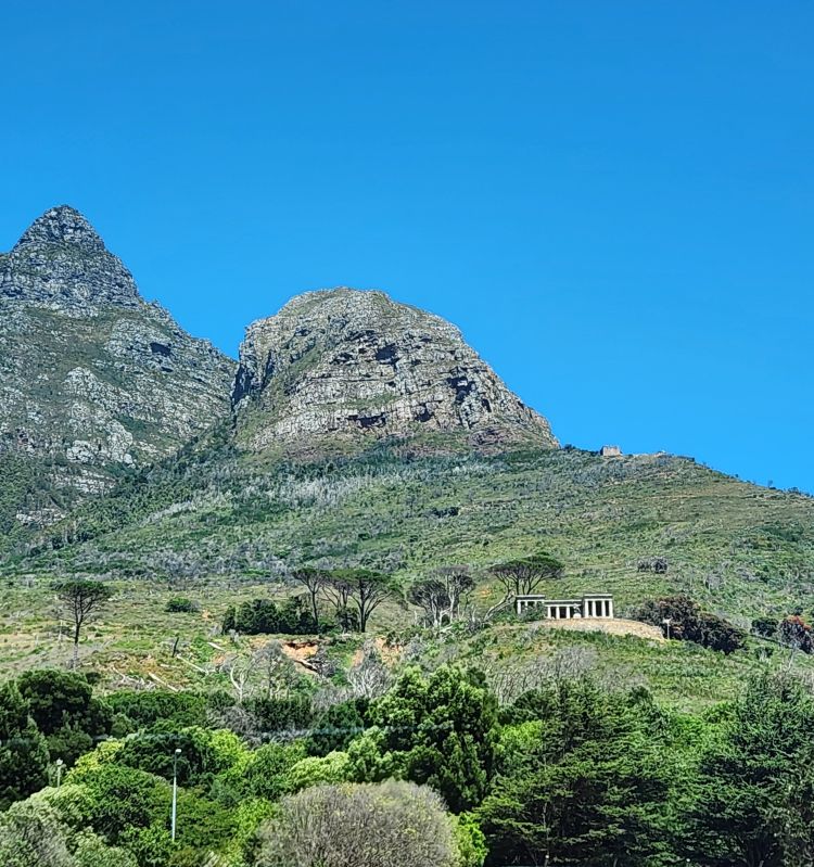 Following along the same route as yesterday, we take the same gorgeous photos of Table Mountain, Lion’s Head and Devil’s Peak. And the Grecian inspired monument to Cecil Rhodes, the diamond magnate who was the 7th Prime Minister of what was then the “Cape Colony,” and who also was instrumental in planning and building a Cape to Cairo railroad.