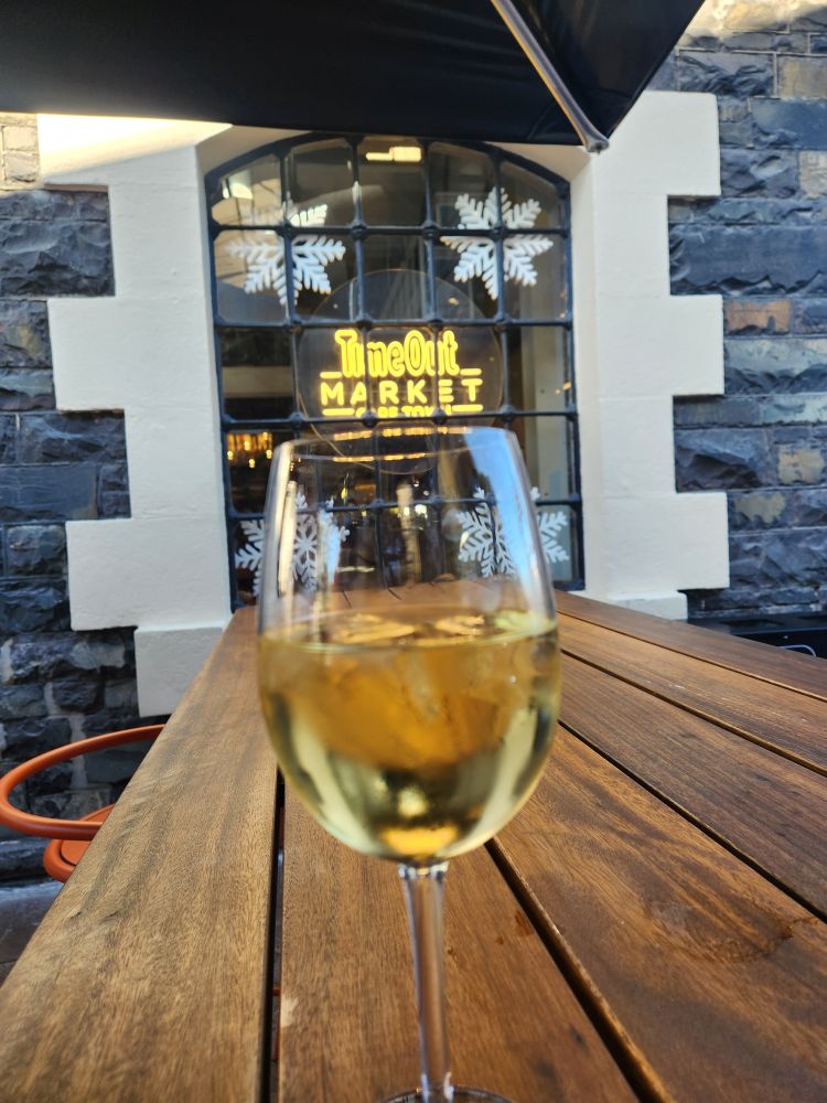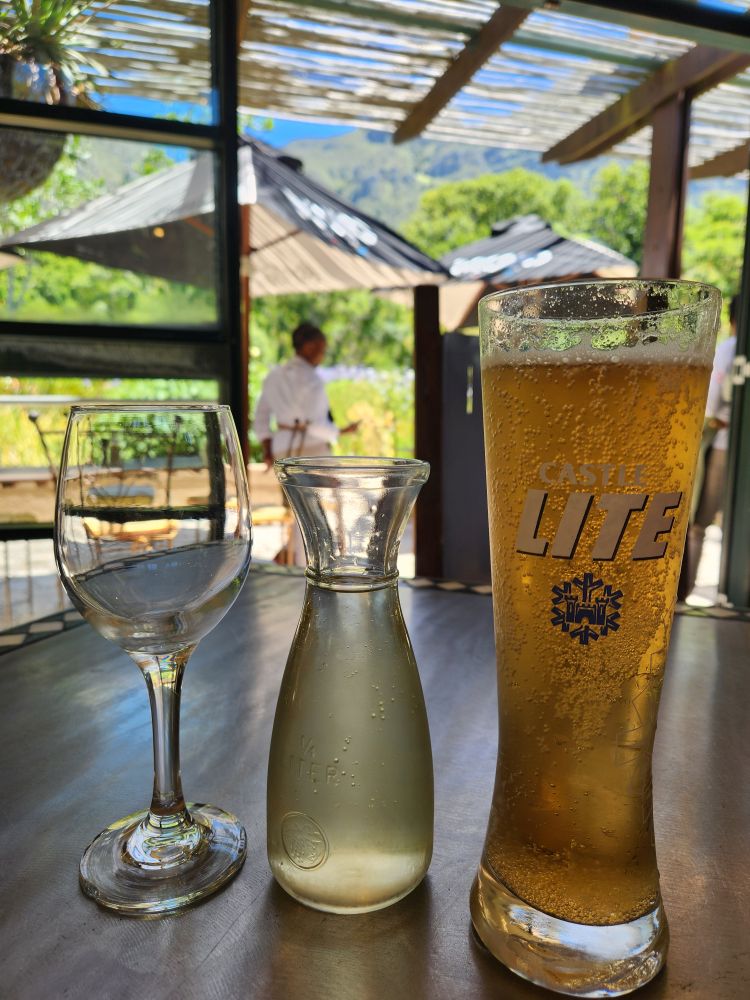 Once we are back in Sea Point, we head to the Checkers grocery store for our picnic dinner supplies, freshen up in the room, then grab the HoHo bus back to the V&A so we can arrive early for the Sunset bus. We are way early – as planned – with time for a drink at the V&A Market, now a TimeOut market just like in Lisbon.