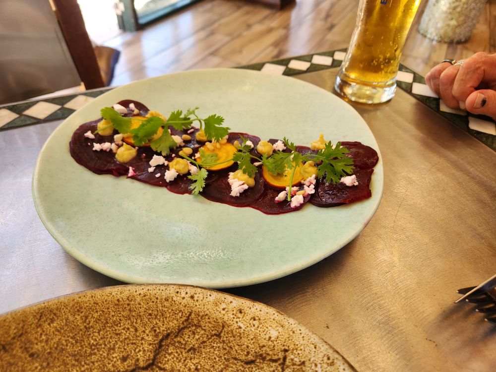 Circling back, we go to the big restaurant, Moyo Kirstenbosch, choosing a table inside near the patio doors so we have both inside and outside feel – without the heat of the sun. It is an excellent spot to hang out, enjoying the view, the drinks and the food. We go with small plates – the calamari (cooked to perfection), crocodile (how can you not? It is excellent – yes, it tastes like chicken) beetroot carpaccio (no explanation necessary) and when we spy the Biltong Potbrood, you know we aren’t skipping that. An excellent lunch that we can now walk off by exploring the rest of the gardens.
