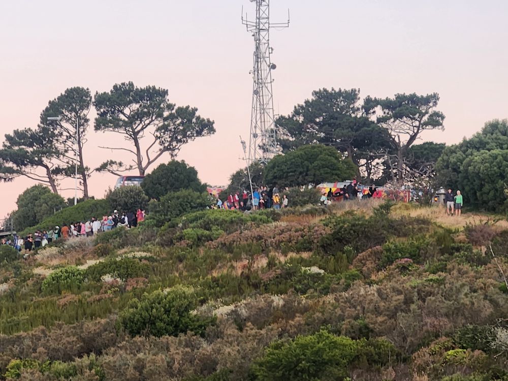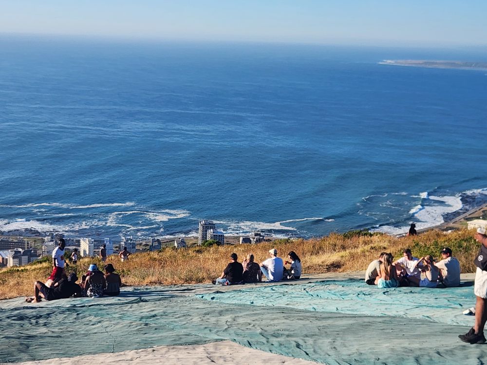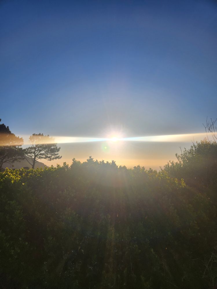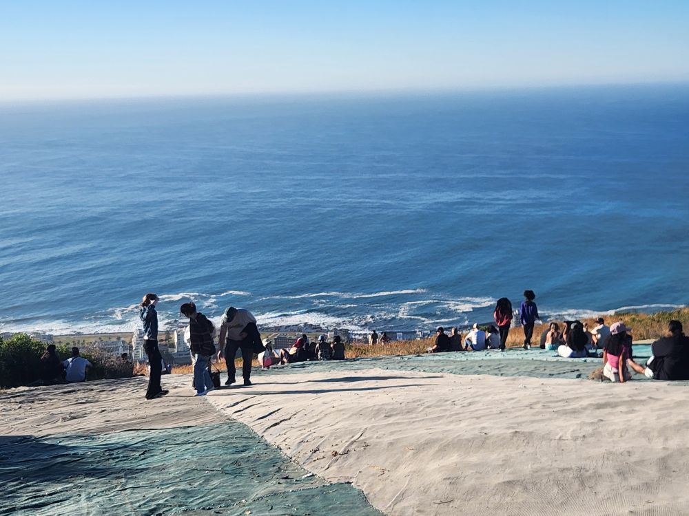 Everybody sort of congregates right by the parking lot area, sitting on this big tarp looking thing that runs down the slope of Signal Hill. We’re happy with our table, but after we’re done eating, we walk away from the crowds- waving goodbye to Pursuit as we go toward the Kramat hike trail.