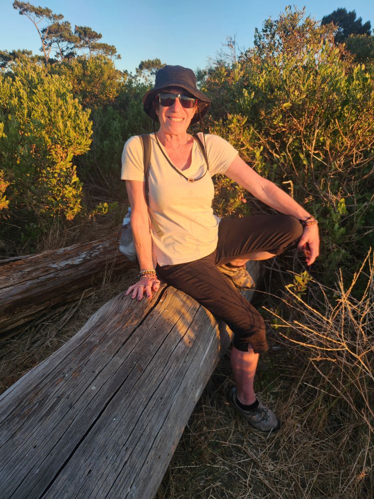 A little way down the trail we find the perfect spot to perch – on an old fallen tree. We have a place to sit. A place to put our drinks. And we are off the trail, and the beaten path for a fantastic sunset. Perfect!