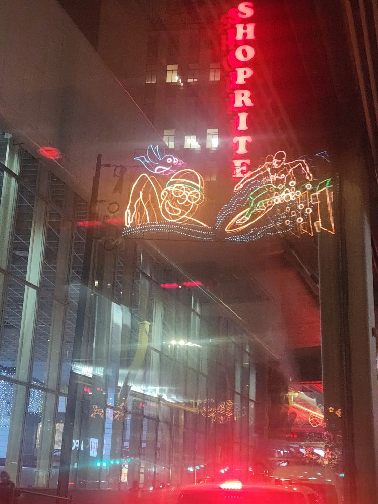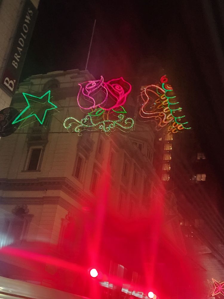 The bus ride back? Not so perfect. By the time we get back to the bus, it is almost full. And while we had planned to sit inside, it is too cold to be outside, we have to share our seats with others. Not too terrible, we sit with two lovely ladies, but inside is sweltering. And I mean so hot we are sweating to death. To make matters worse they take is to see the city lights which are holiday lights strung across the road for a couple of blocks.