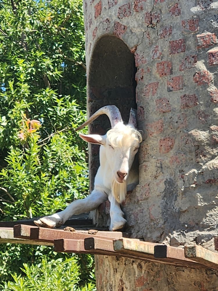 After the tasting, we go outside to wander a bit, watching the goats in the tower and playing in the pen. Then head out to the entrance to gaze at the mountains in the distance. This place is just gorgeous. Even though this is our 3rd time here, it never really gets old. It is just lovely.