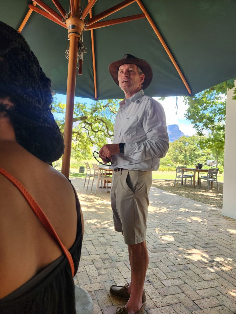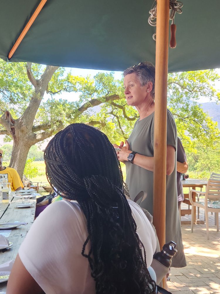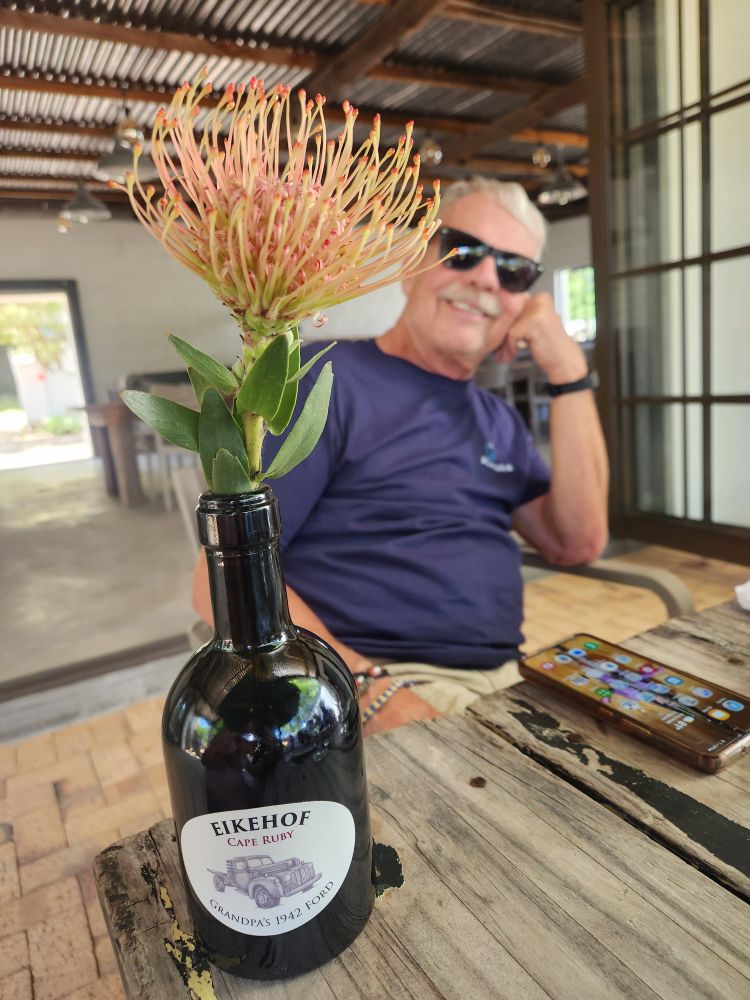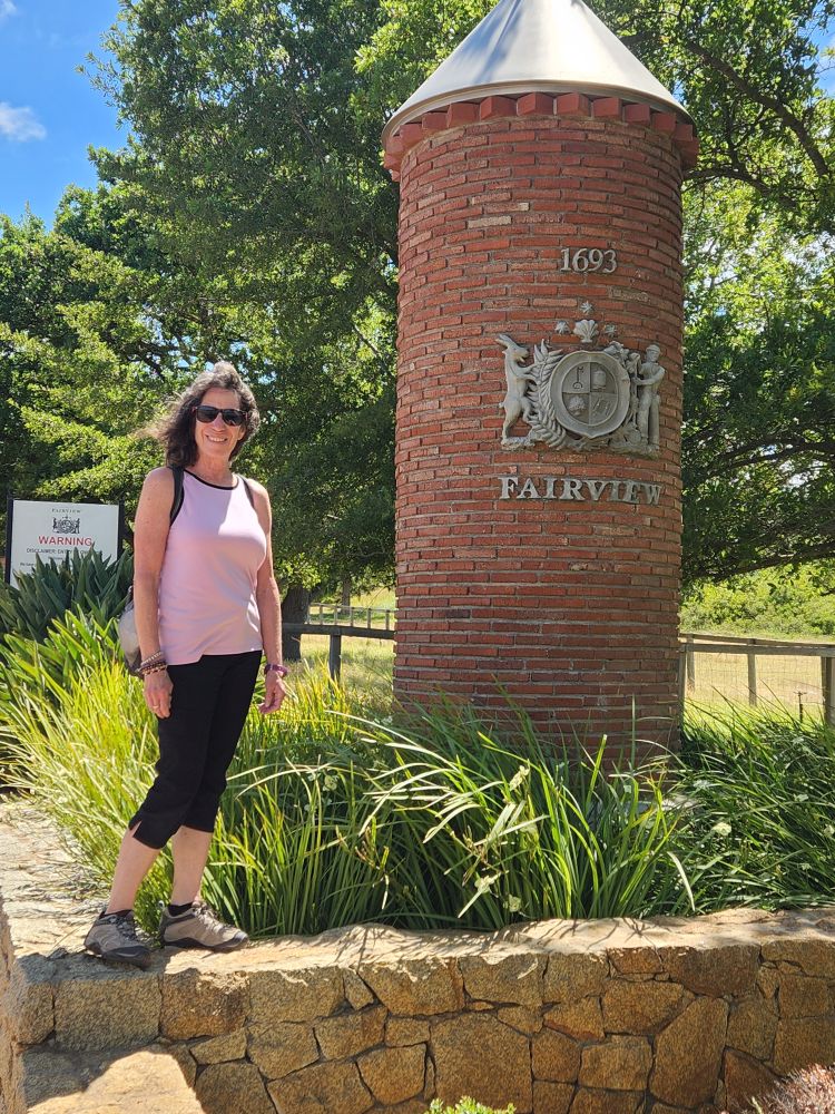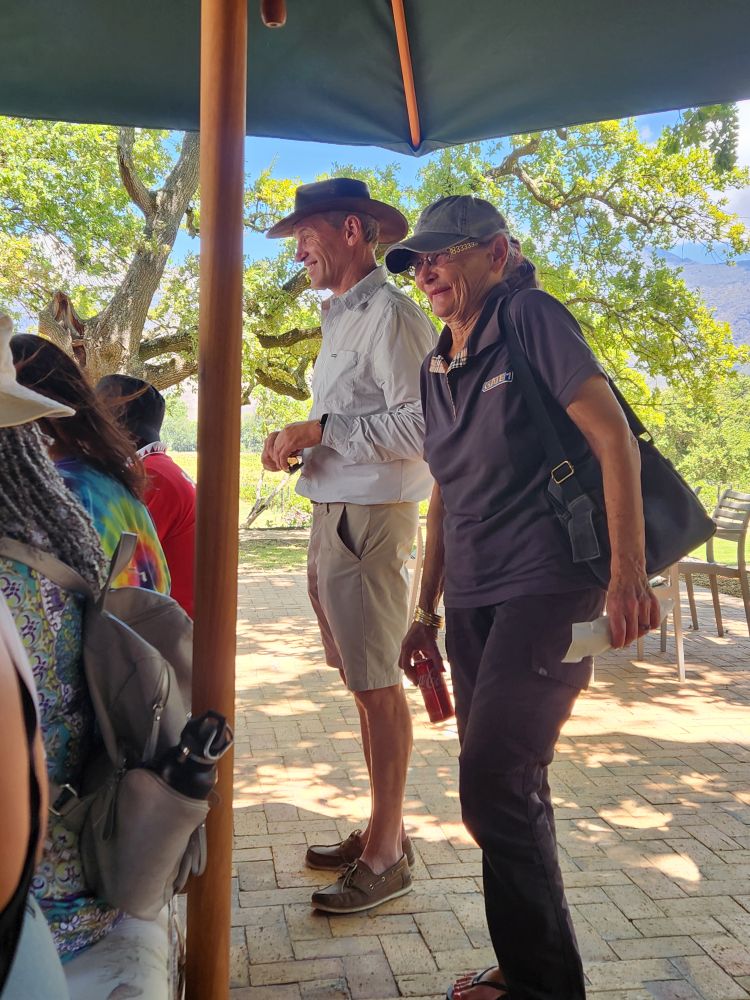 Our first stop is Fairview – Goats du Roam! – just like last year. And it is wonderful as always. Our sommelier is a hoot and Colleen runs the place – wandering back and forth, talking to everyone, bringing us all bread to go with our cheese and then honey butter for the ladies who insist they need butter with their bread. No comment. But all in all, still a great tasting with excellent wines and cheese. And since we still have ham and buns left, we pick up some cheese from the store for a picnic dinner tonight at the hotel. Perfect!