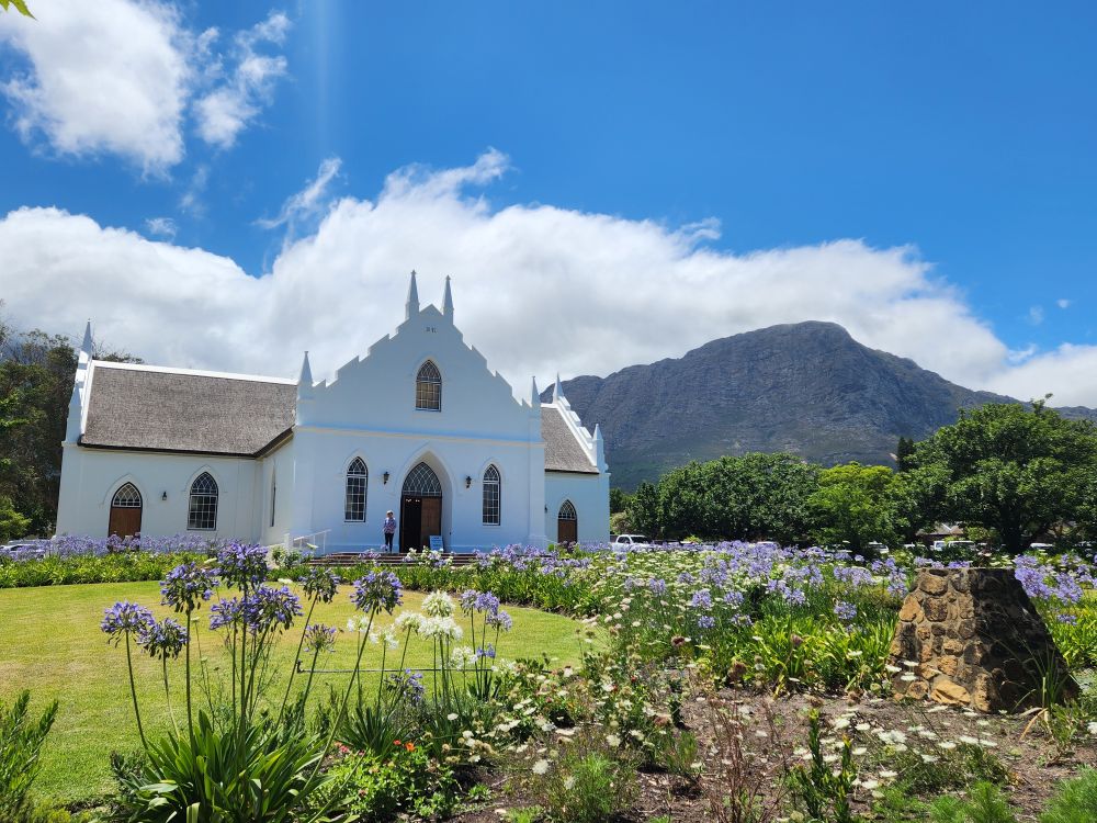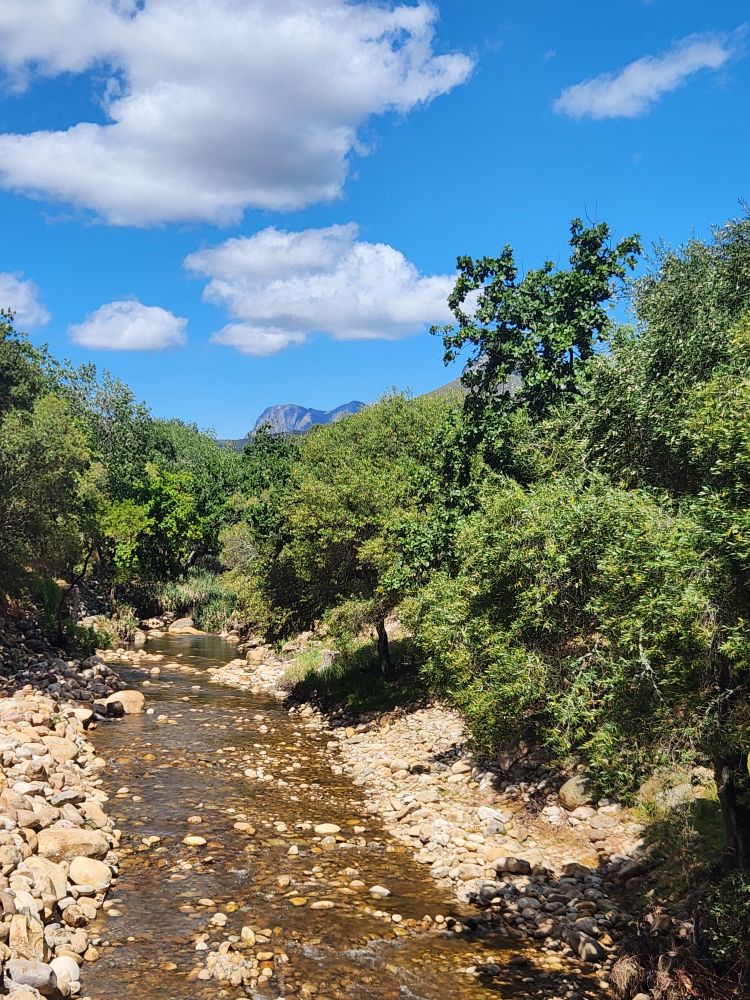 Our next stop is Stellenbosch – to stretch our legs and shop. Well, you know we are stretching our legs – and we wander off in search of some walks – finding a map with trails in front of the Stellenbosch college dean’s office. Unfortunately, we never really find the trails – but do have a nice stroll along a pretty little creek that runs through the town.