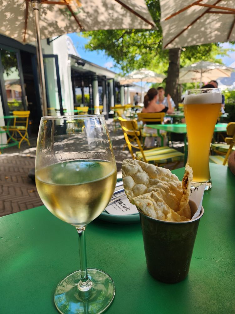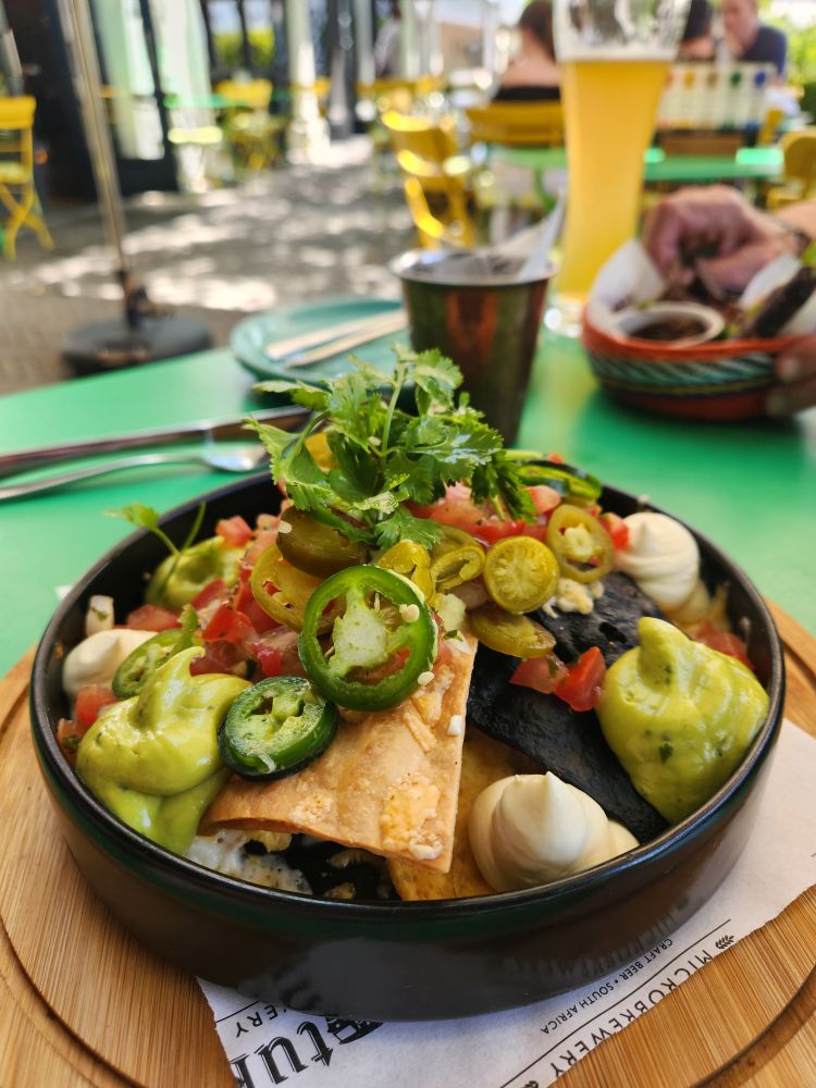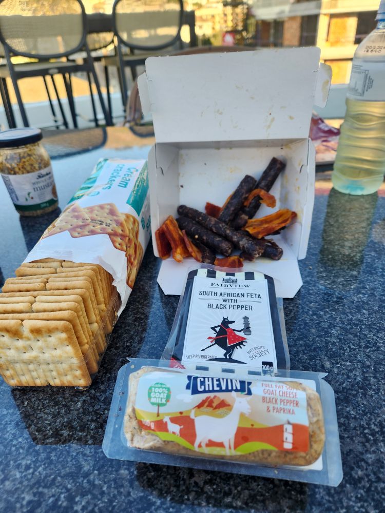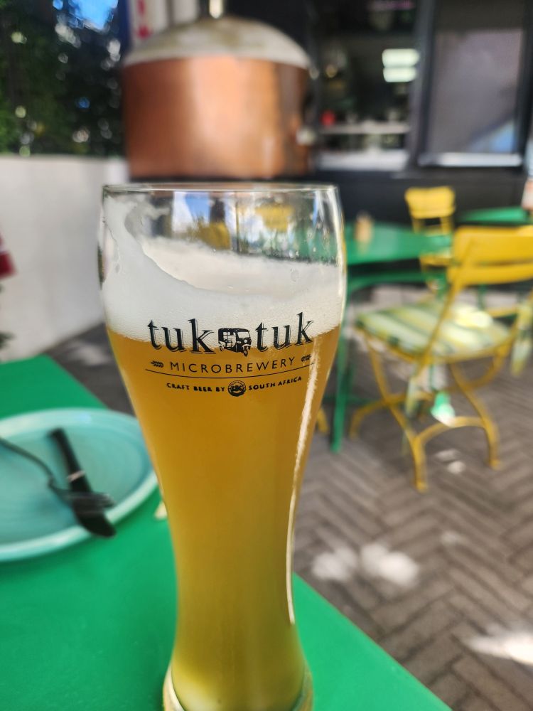 There isn’t anything all too exciting here, so we strike off down the road, past the church to Tuk Tuk Brewery, where we had beer and wine last year. Only this year, we are eating here as well. Grabbing a table in the shade on the patio, we tuck (yeah, that’s the pun!) into a huge Biltong bowl and equally huge Nachos for one (would NEVER want to see what Nachos for two would be like!). It is all great, but so much food, that we take the biltong to go for later. It will add to our picnic tonight or come with us to Pretoria tomorrow. It’s that big!