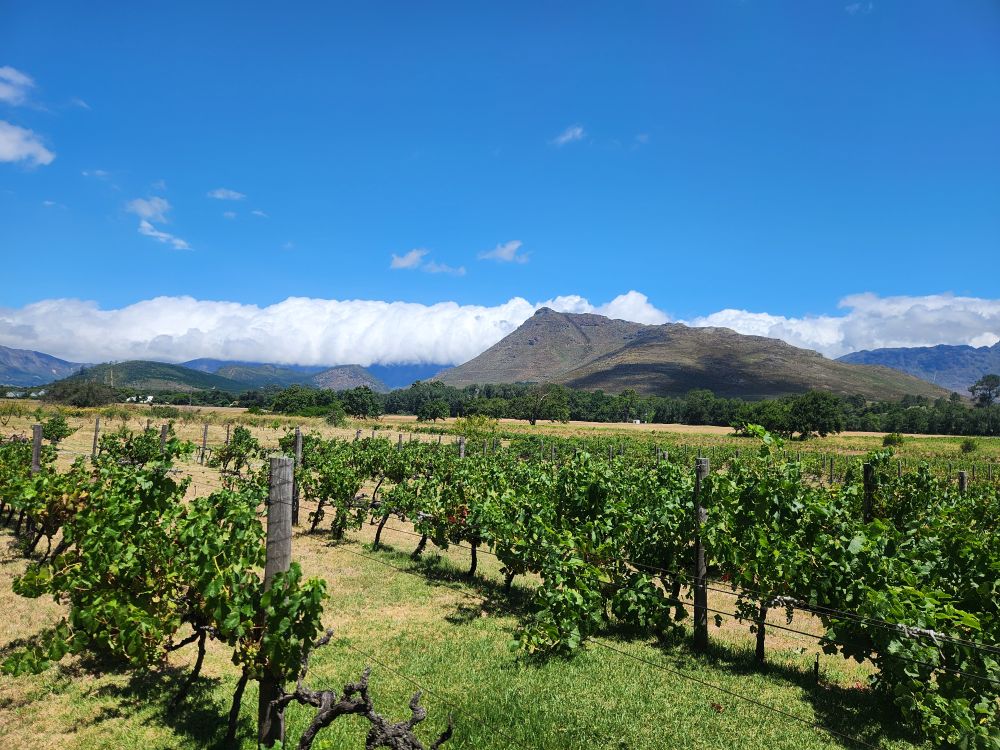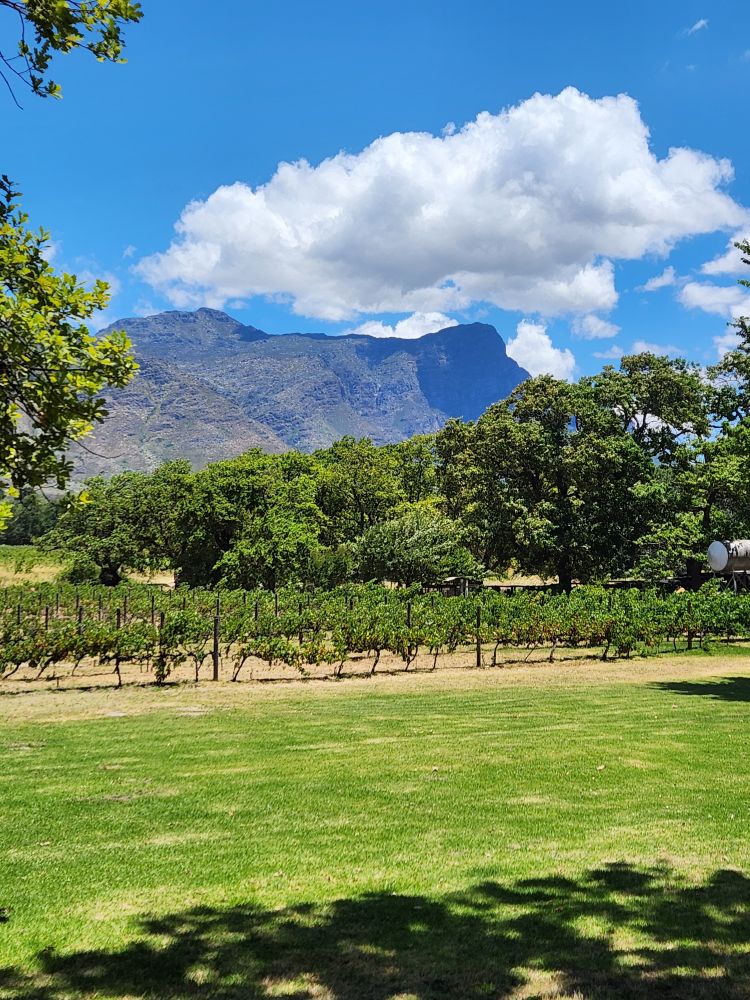Everyone is on time, which is a bonus, and the drive to Stellenbosch is pretty and uneventful. Colleen is a great guide – filling everyone in on all the details and history of the area as we make our way out of the city, watching as Table Mountain is enveloped in clouds. That’s the typical Table Mountain tableau.