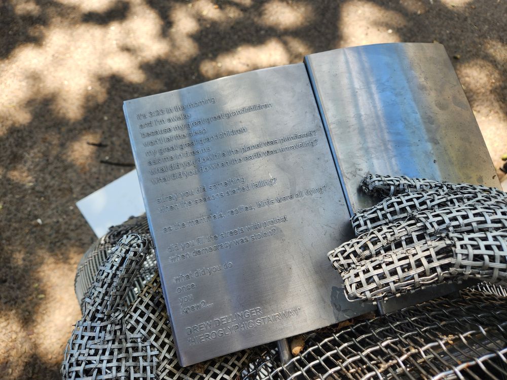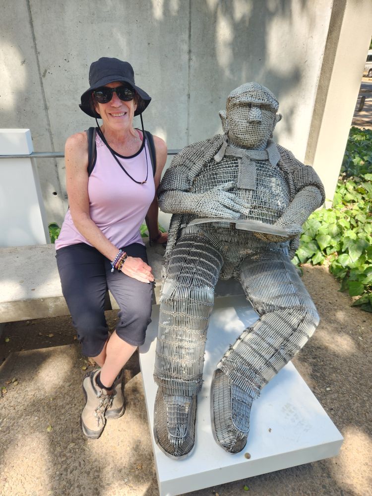 On the way back toward the bus, we find this great wire statue with an incredibly poignant and important and all too true statement engraved on an open book in his hand. Just take a minute to reflect here.