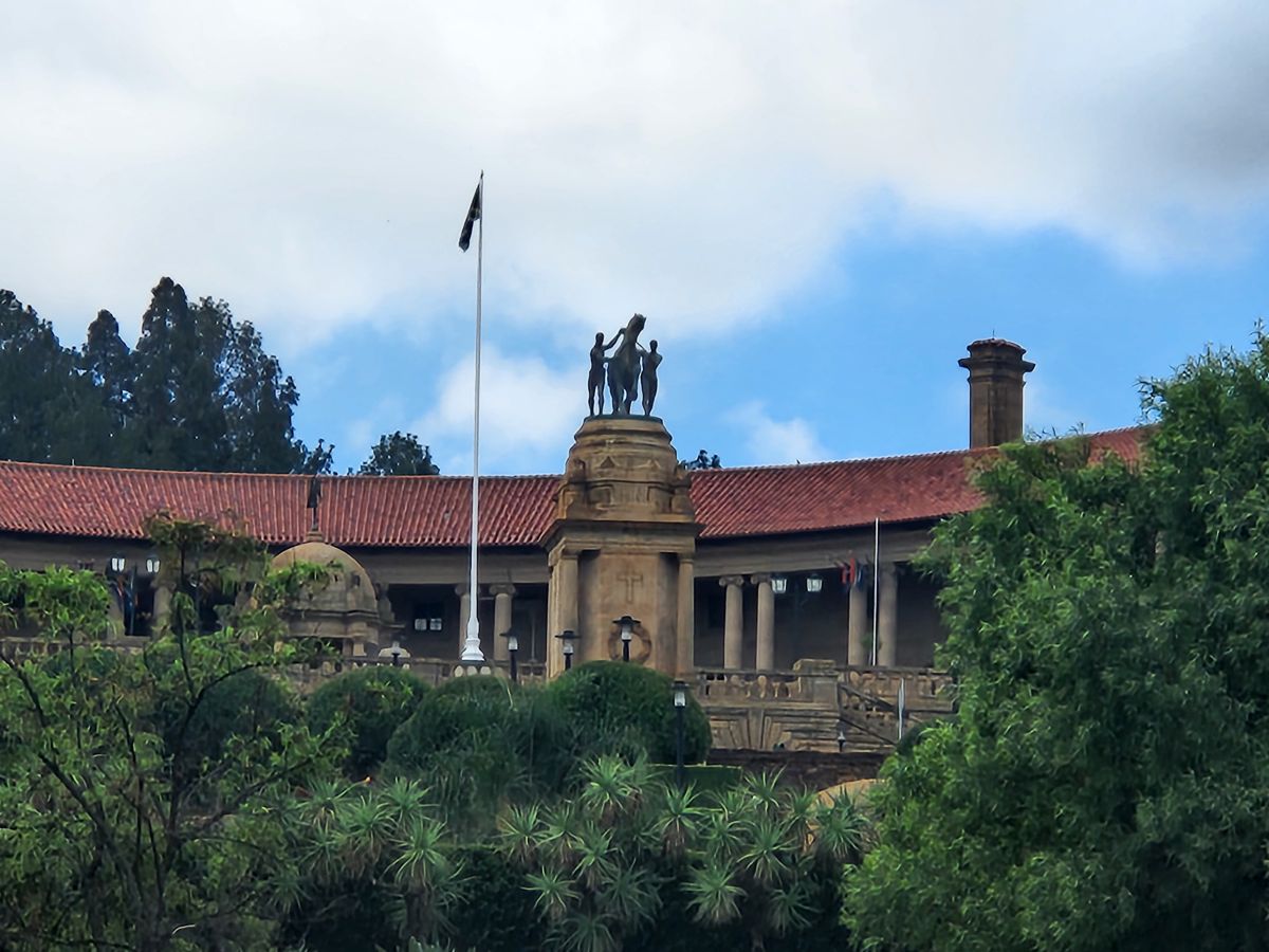 We are all on the bus and out of the reserve at 11am and on our way to Pretoria for a quick city tour. Because it is Boxing Day, nothing is open – no museums, no stores, no nothing. Colleen is having to improvise to find things to occupy us with until she drops us at the airport. So off to Pretoria (Marching to Pretoria….) we go.