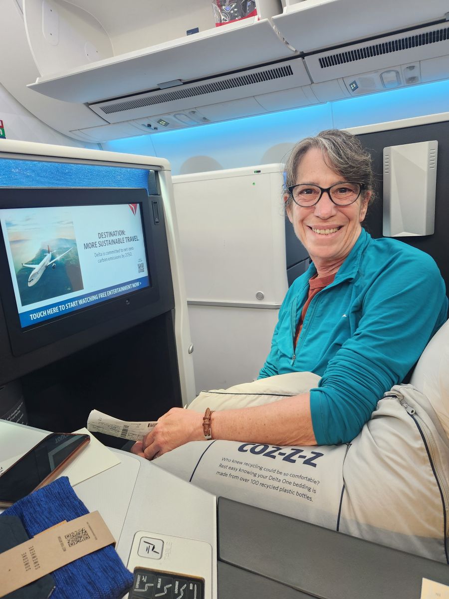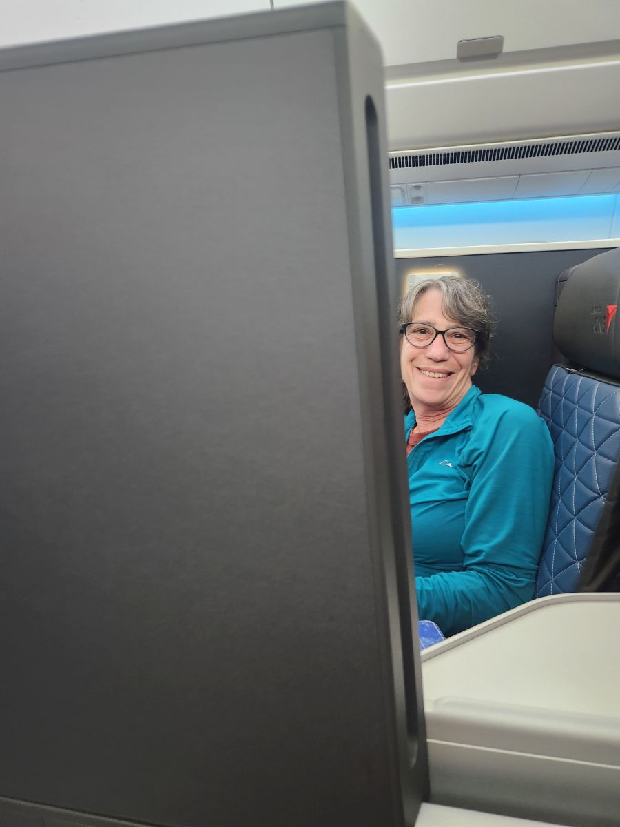 At the airport, check in is a breeze, we spend an enjoyable couple of hours in the lounge, then make our way to our DeltaOne suites. Yes, we splurged. We figured on an 18 hour flight, we might as well go in comfort – and we did! The seats aren’t really “suites” per se, but they are comfortable, lie flat beds with doors that give you a little more privacy than usual.