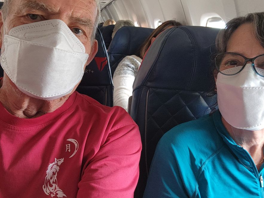 We hit the lounge for some coffee and to stay out of the general hub bub of post-Christmas travel, then made our way to our gate in a super crowded concourse building. Eek. We were too early to even line up to board, so we decided to stretch our legs and walk the concourse. Double Eek. It is crazy and crowded and we’re masking up! The Stevies were all getting sick on the tour (yes, we masked on the bus) and now? With all these bodies in here. Oh no. Masks it is. And on the plane too. You can’t be too careful nowadays.