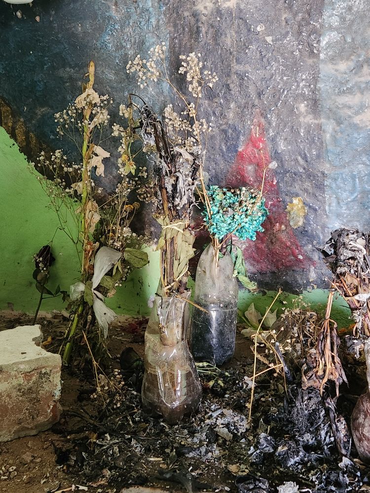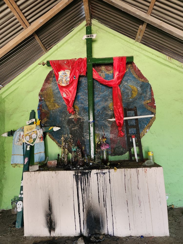 Up at the very top of the cemetery is a little chapel that is still frequently used today. Inside on the altar are dried flowers as well as black wax from candles lit by shamans, who are very important here to this day. The black candles signify something – chasing away spirits, or maybe calling bad spirits here to curse someone. Who can tell? It is really odd though to see the black wax spilling over the altar where you’d normally see the white wax from “pure” candles.