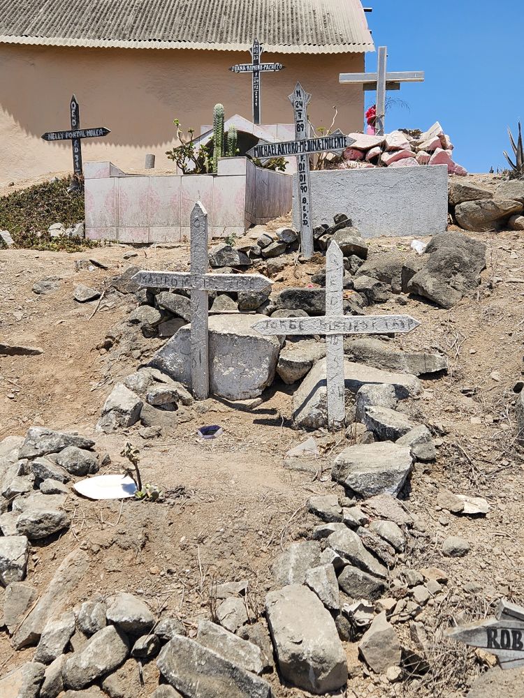 Pretty wild. Alfredo tells us that this area, which is dry and dusty and sandy now, becomes green in the winter time. Because it is located in a bowl between mountains, when the clouds and fog settle in, it turns the entire cemetery green! Would love to see that!