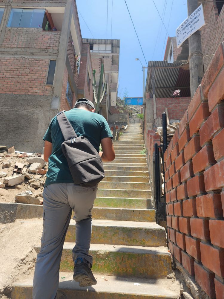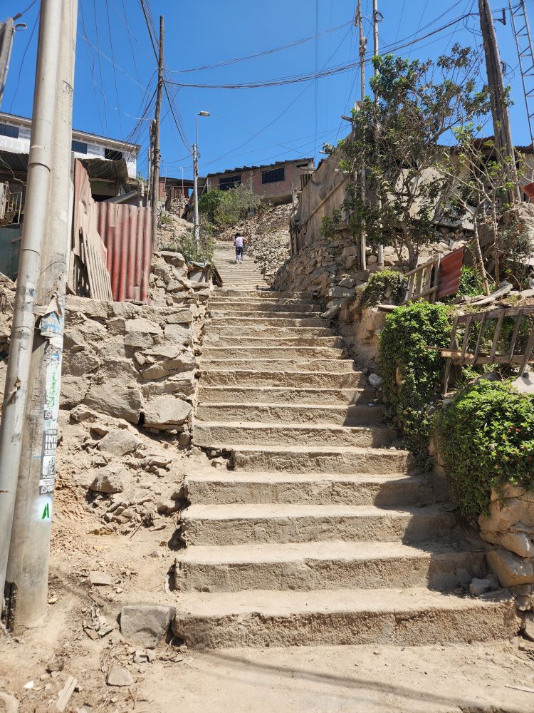 We persevere and make it up to the school – while getting some great views for an overall perspective of the community – and a close up shot of the stairs and entrance to Sra. Ninfa’s home.