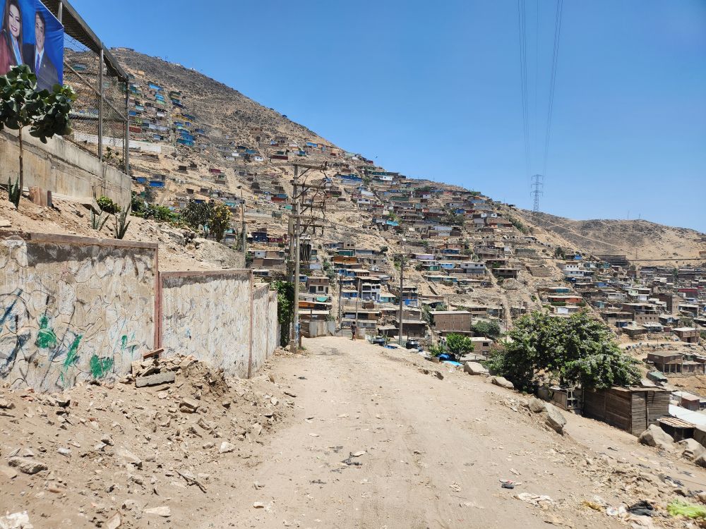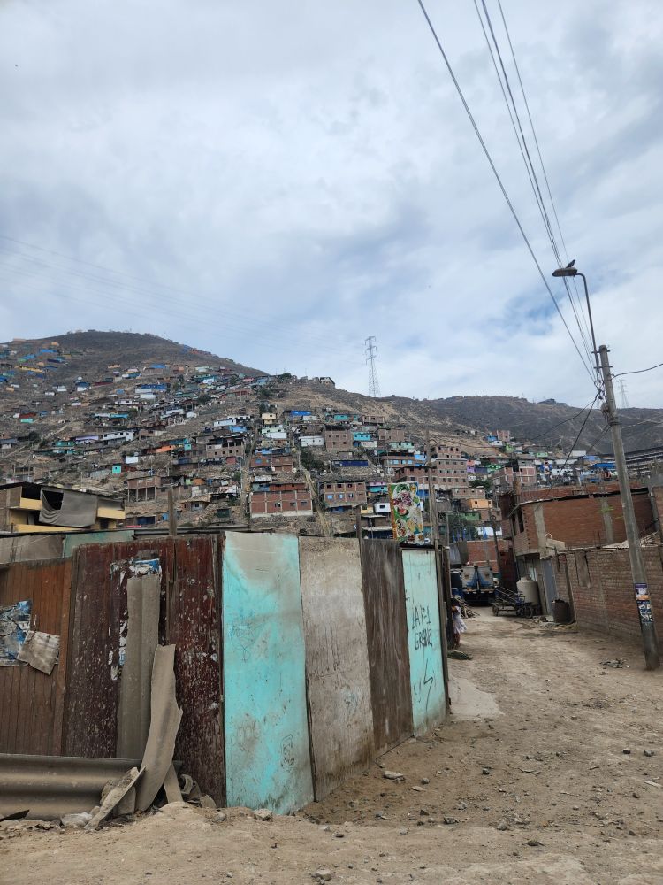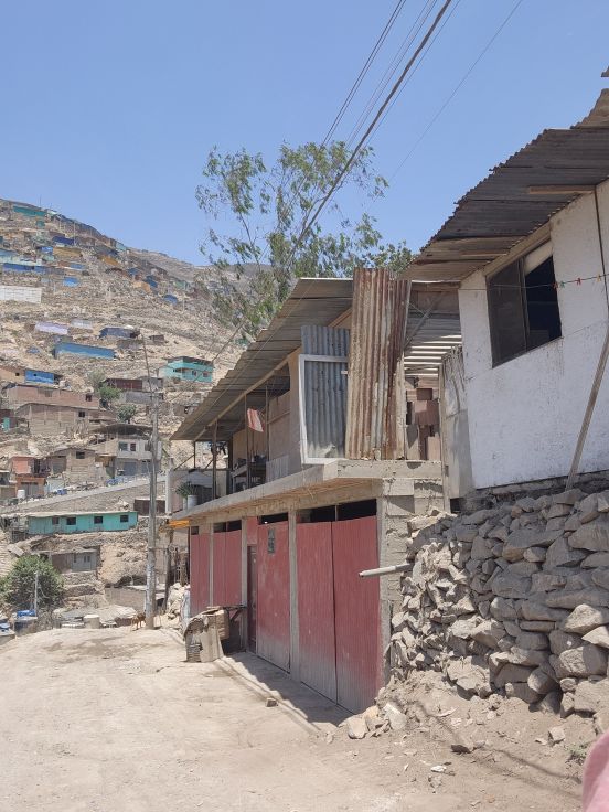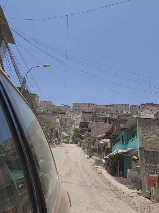 Visit completed, we head back down the narrow dirt streets to the next community, in the sector Nueva Rinconada. Located in the zone of Pamplona Alta, which is one of the biggest and newest zones, created in the 1990s and early 2000s, in the district of San Juan de Miraflores, this area is referred to, derogatorily, as the pig sties. The reason goes back to when the indigenous first migrated here and brought all their animals with them. Unfortunately, it is a very unforgiving part of the country and nothing could survive – not the chickens or the cattle or anything except pigs. Thus, the name. To this day, though, the pigs still survive and as we drive up into the community there are many butcheries offering pork products along the side of the dirt roads.