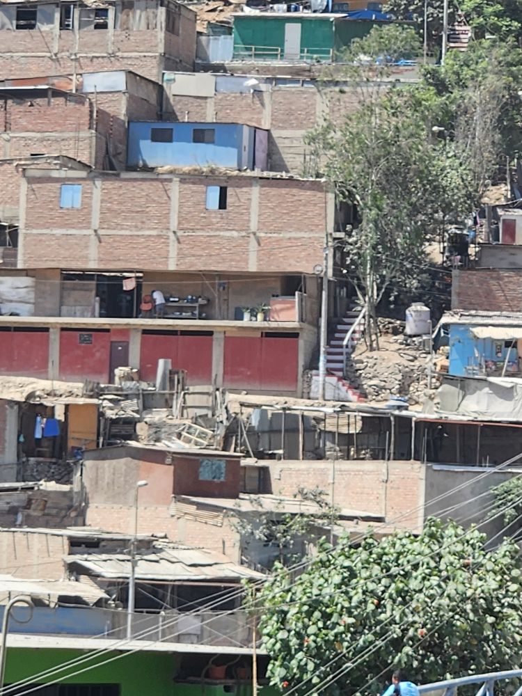 Alfredo also points out a huge mansion on the hills in the distance among the shacks. This mansion was built by an Eastern European who married a local Peruvian woman with land rights. They decided not to move anywhere and to build their home (albeit a mansion home) here because of the rights. It is very hard to get land rights in Peru. You have to homestead on a piece of property for over 25 years to even be considered for a land grant. Then you have to petition the government and there is no guarantee that you will be awarded the land. Which is why people don’t leave the land they have developed, especially if they are granted rights.