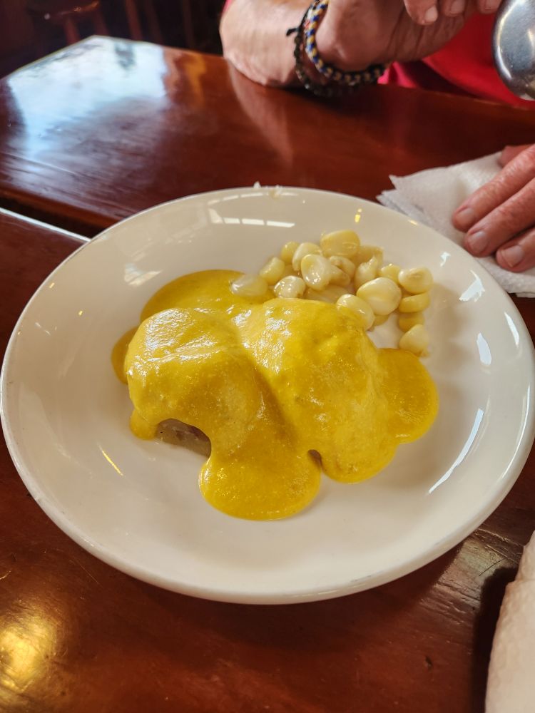 Arriving at Mercado No. 2, we visit an actual restaurant called Pale Chanfainita for coastal food. The owner started out in 1968 with a food cart and then worked his way up to this restaurant and has been here ever since. Chanfainita is the ultimate Peruvian street food and is now one of the most iconic dishes in Peru. Easy and cheap to make, thus making it taboo for the elite to be seen eating it in days gone past, it is a mishmash of African and Spanish culinary trends, combining some type of meat and potatoes in a yummy beef sauce. The Chanfainita we are having today is actually beef lung – OMG I actually ate lung!!! And it was good! The stew also comes with a side of papa ala Huancaina, boiled potatoes covered in an excellent spicy cheese sauce. Totally excellent! While we eat, we get into a conversation with the waitress, named Lady. This spirals us into a discussion on how kids are named here in Peru – from American TV shows! That’s how Junior got his name, and he doesn’t even know which show, he just knows his parents watched American TV and there were people named Junior, and they liked it! Ah, what our culture has spawned…..