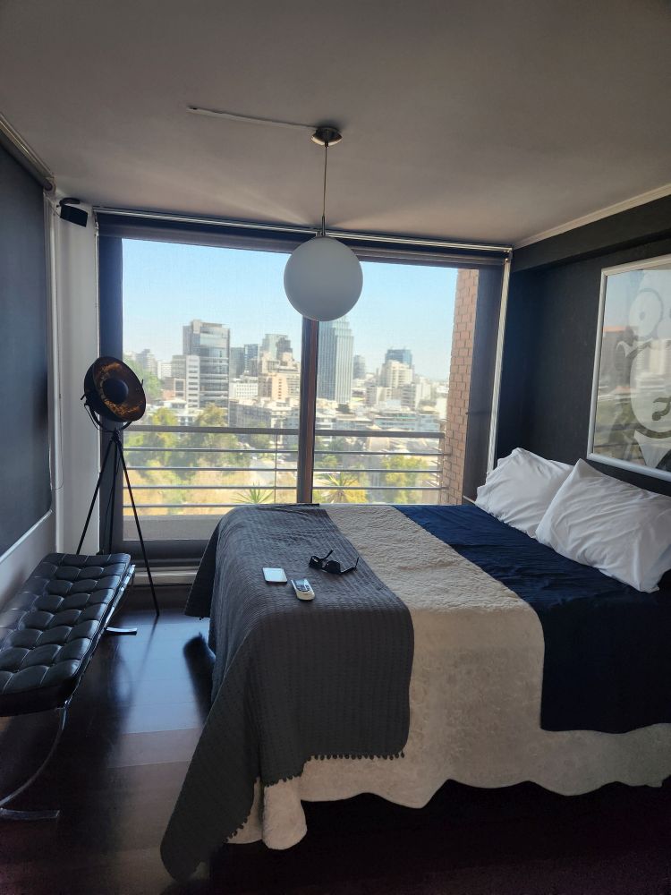 Grabbing a cab, we head over to our Recoleta apartment. As we are approaching, our cabbie tells us it is muy peligro aqui. Hmmm…really? Dangerous? This is in the vicinity of where we stayed the last time we were here, albeit some years ago, and we didn’t think it was that bad. But….out we go to check in, and the apartment does have a locked gate that the front deskman has to buzz us into, but other than that? Doesn’t seem bad. And our apartment is great! Top floor, lovely little balconies overlooking the Mapocho river and a fantastic skyline view over to the Andes. Wonderful.