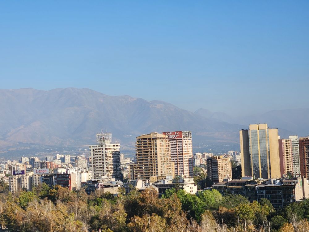 The flight is smooth and easy, the view over the mountains as we cross the continent spectacular, and we arrive in Santiago right on time.