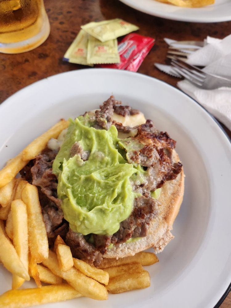 Once at the Plaza, we decided we were in the mood for food and found a seat at one of the restaurants behind the plaza, the Cafeteria Pizzeria y Sangucheria Bella Compañia. We were in the mood for sandwiches and this place seemed to foot the bill. Although they also had chorrillanas – basically throw everything on top of French fries – we weren’t quite ready for that and, after some ordering confusion (I wanted to order a completo which was essentially a hotdog topped with all sorts of things), we ended up with a really good crispy fried chicken sandwich and a Mechada – which is a sandwich made with pot roast or stewed beef and in this case with cheese and palta, avocado. Both very good and filling and perfect for a good solid mid-day meal.