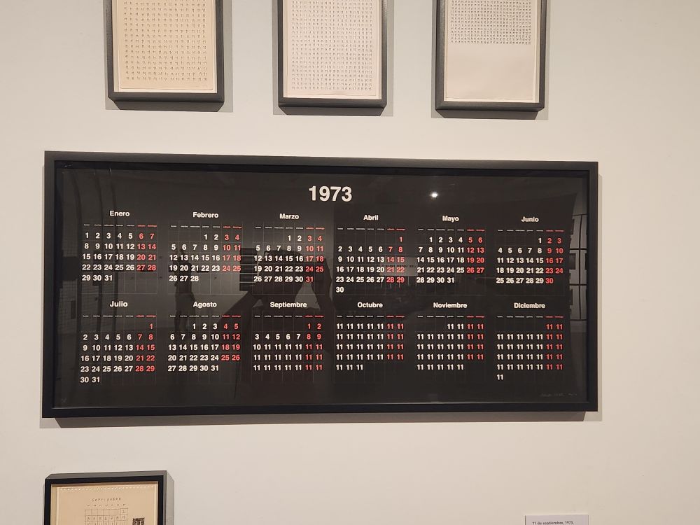 Ready to walk off our lunch, we headed over to the National Museum of Fine Arts, to spend some time meandering through the artwork. 3 stories worth of great artwork – both traditional and also contemporary dealing with the uprising and the dictatorship. We particularly liked the 1973 calendar that had the dates up until September 11 when the coup took place, then every date after that was simply 11.