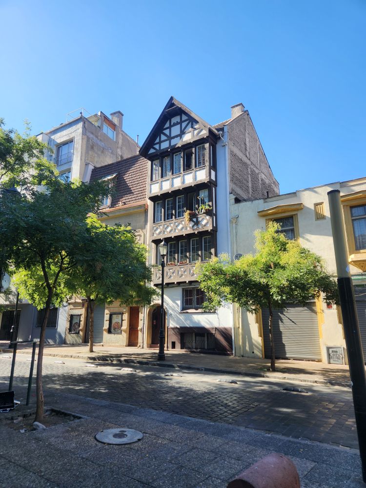 For someone who isn’t native here, Juana knows here stuff. She starts with the history of the Museum of Fine Arts. Designed by a French architect as a gift from the French. Then we move through the city, stopping at the oldest building in Santiago, built in 1750, which marked the end of the upper-class area in the old days. This particular corner has buildings that represent Gothic, Portuguese, German architecture – all the different cultures who came here.