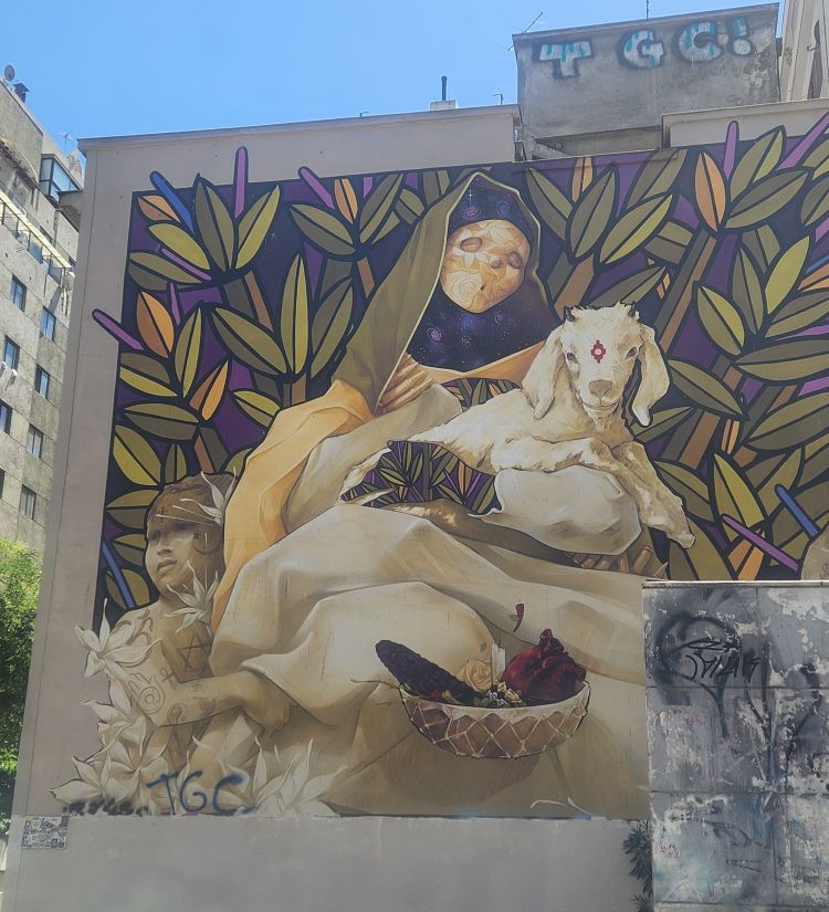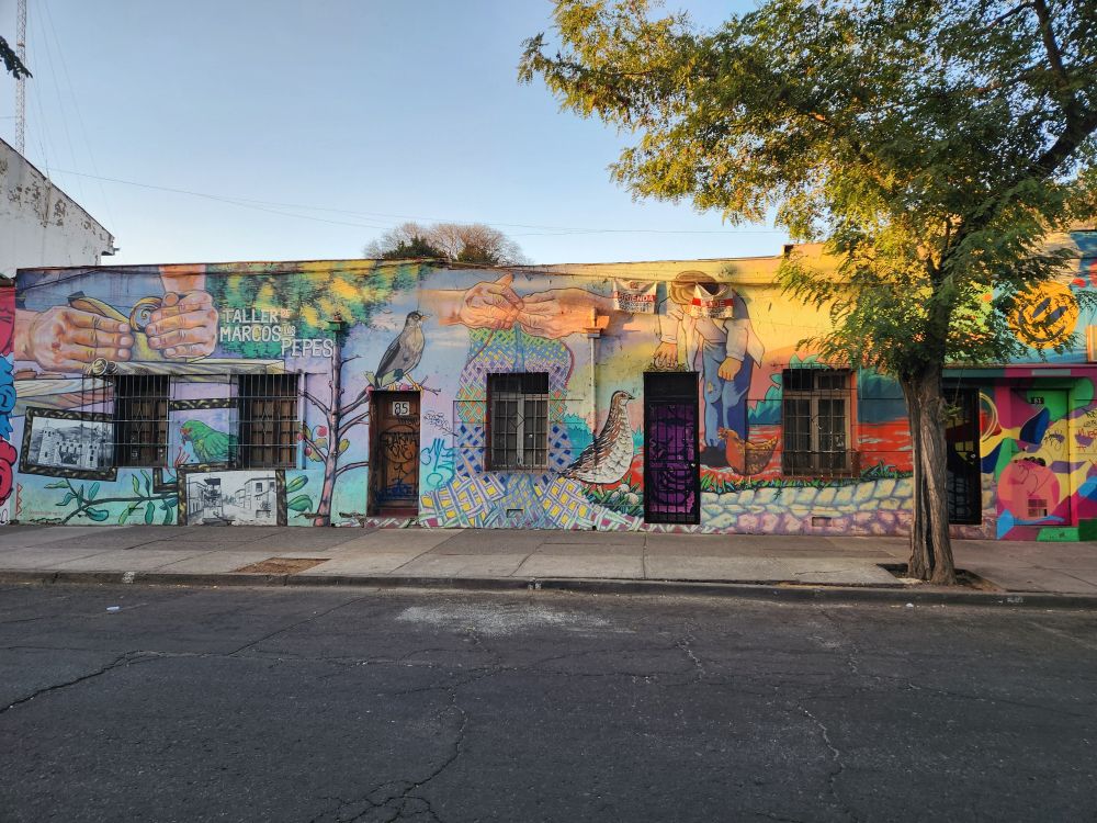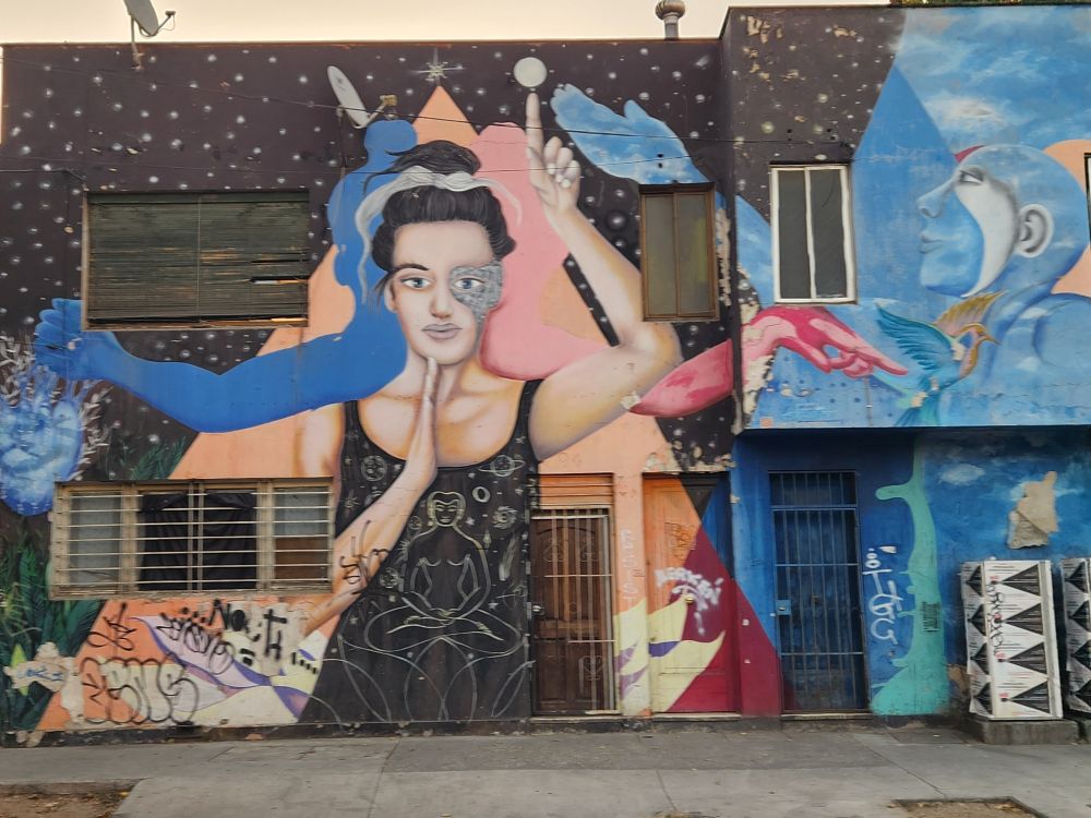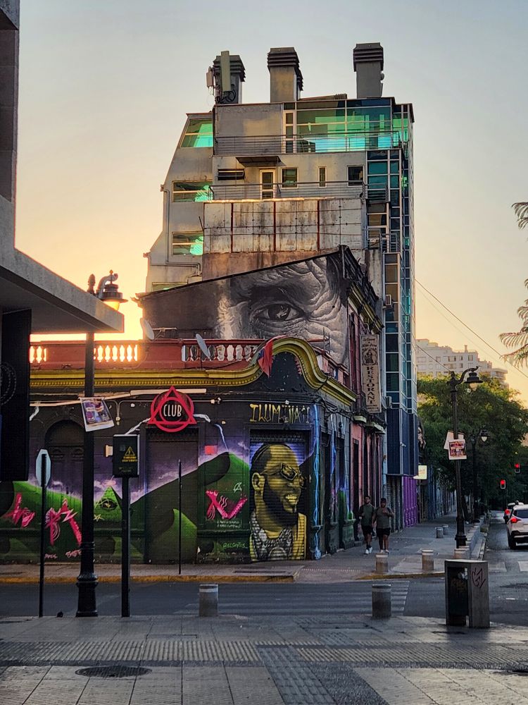 After a blissfully quiet sleep – yes, those sliding glass doors make a difference! – we are ready to hit the streets. Today’s plan is to hook up with the free walking tour that starts at the Fine Arts Museum, right across the street from us. We arrive at the appointed hour to find Juana, our guide, waiting on a bench outside the museum. Turns out Juana is originally from Greece. Her mother is German, father Greek. She came here for a photography job in 2019, got stuck with pandemic and decided she liked it here better than Greece and stayed. She also has started a whole dance company which she directs, choreographs and dances in. They travel all around Latin America and she puts on a festival that is very successful. How sweet is that! And even better? It’s just the 2 of us and Juana. Private tour – we’re golden!