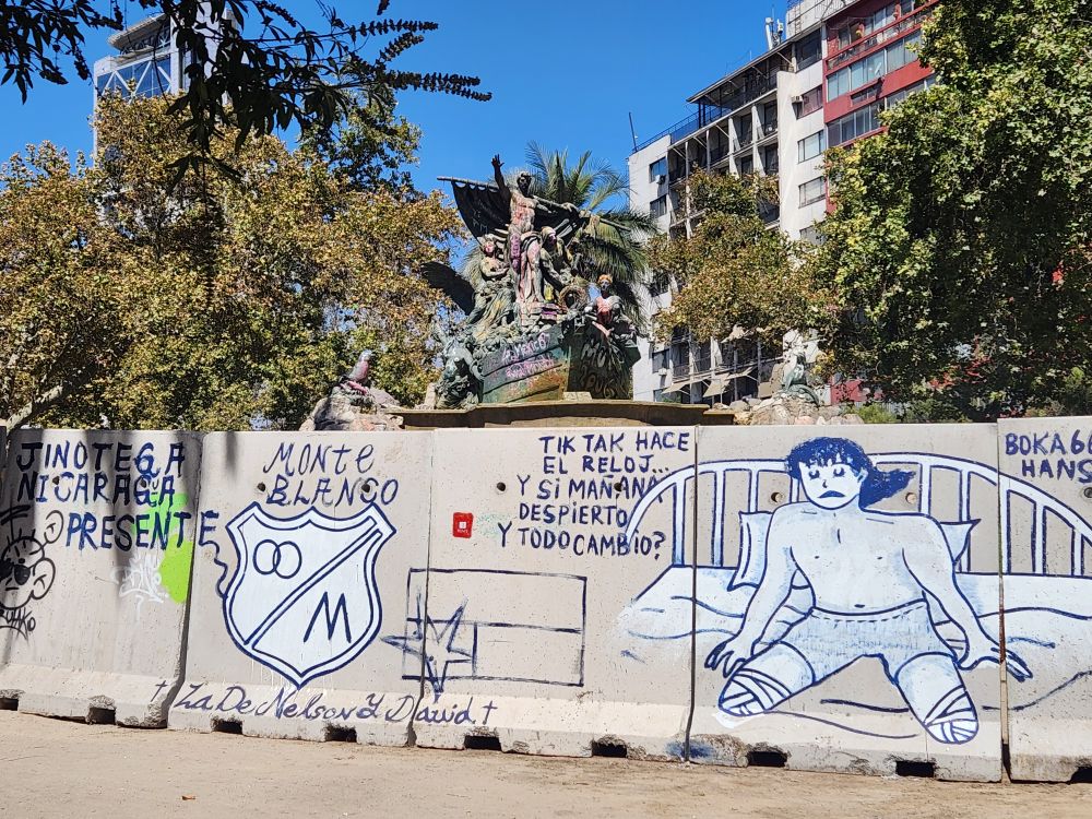 Moving on, we pass Plaza de Armas which was actually important to Incas all those years ago. The first sun beam hit right there and they consider it a sacred place. We learn that the river is named Mapocho, or Mapu Chuco in Mapudungun, from Mapuche, the last indigenous tribe. It is normally dry, which is what we remember from our 2019 visit. This is the first time since the 80s that the river has had this much water in ther summer. There has just been so much rain.