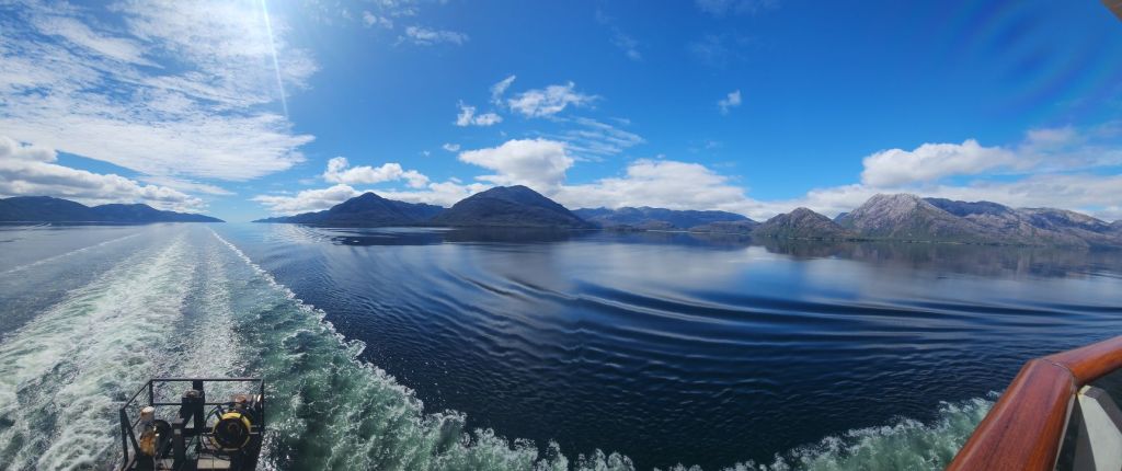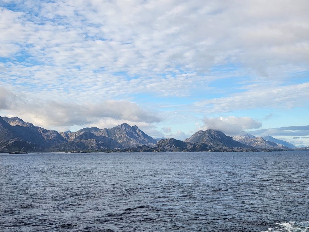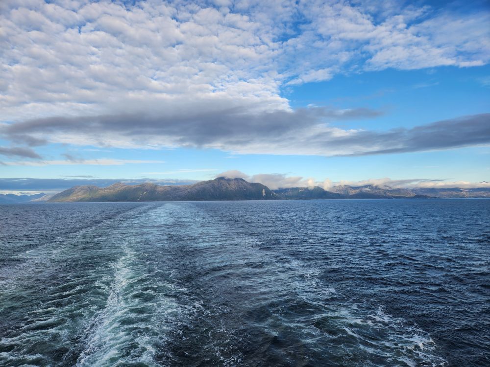 Gym and dinner, and then back to the balcony to spend the evening watching our passage through the fjords. There is a singer/guitarist on the mainstage tonight and he doesn’t sound like our cup of tea. We are much happier hanging out with our after dinner drinks, watching the mountains majestically rise up out of the water all around us.