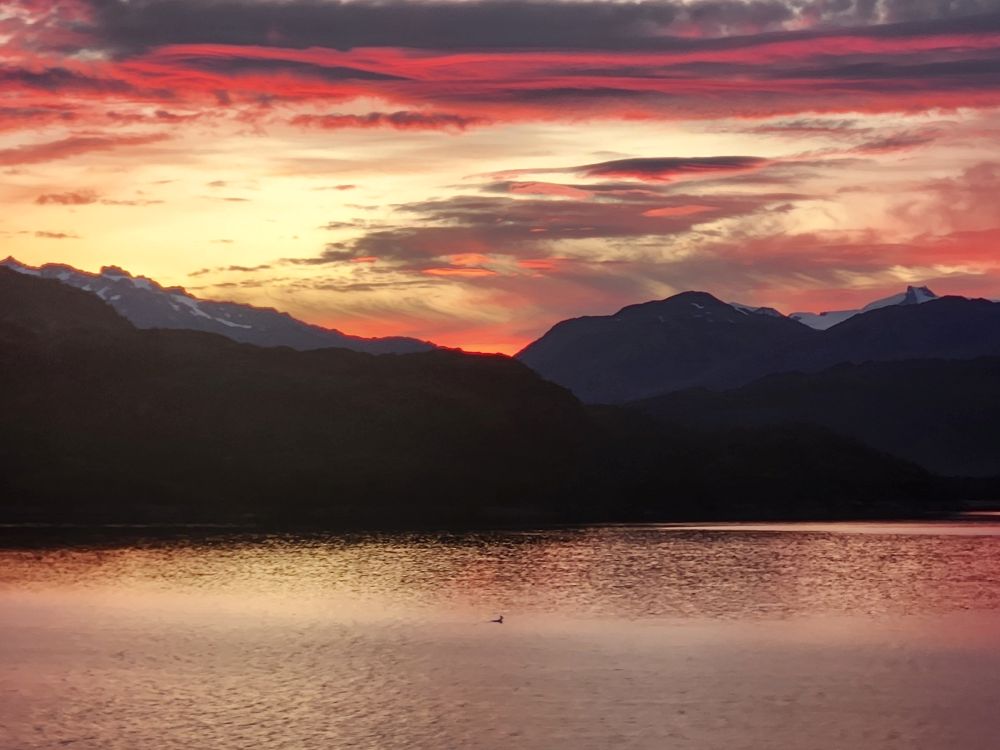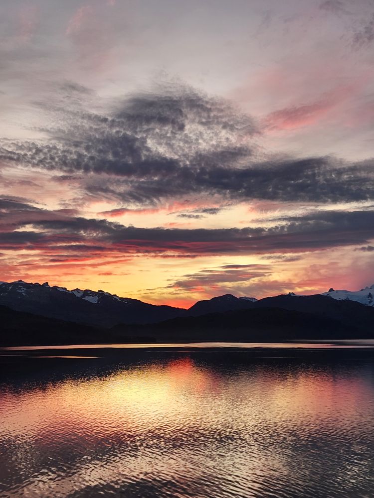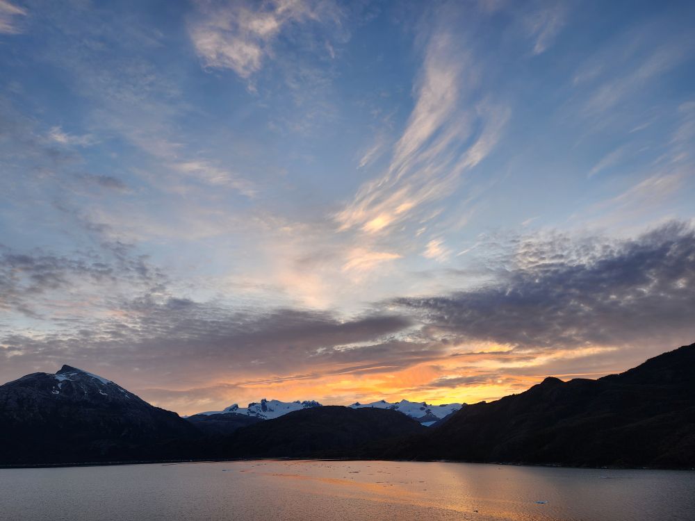 Up an at’em early today – we have Brujo Glacier viewing early this morning and they are opening the bow for viewing. No exercise for us this morning, as we are out on deck for a magnificent sunrise….
