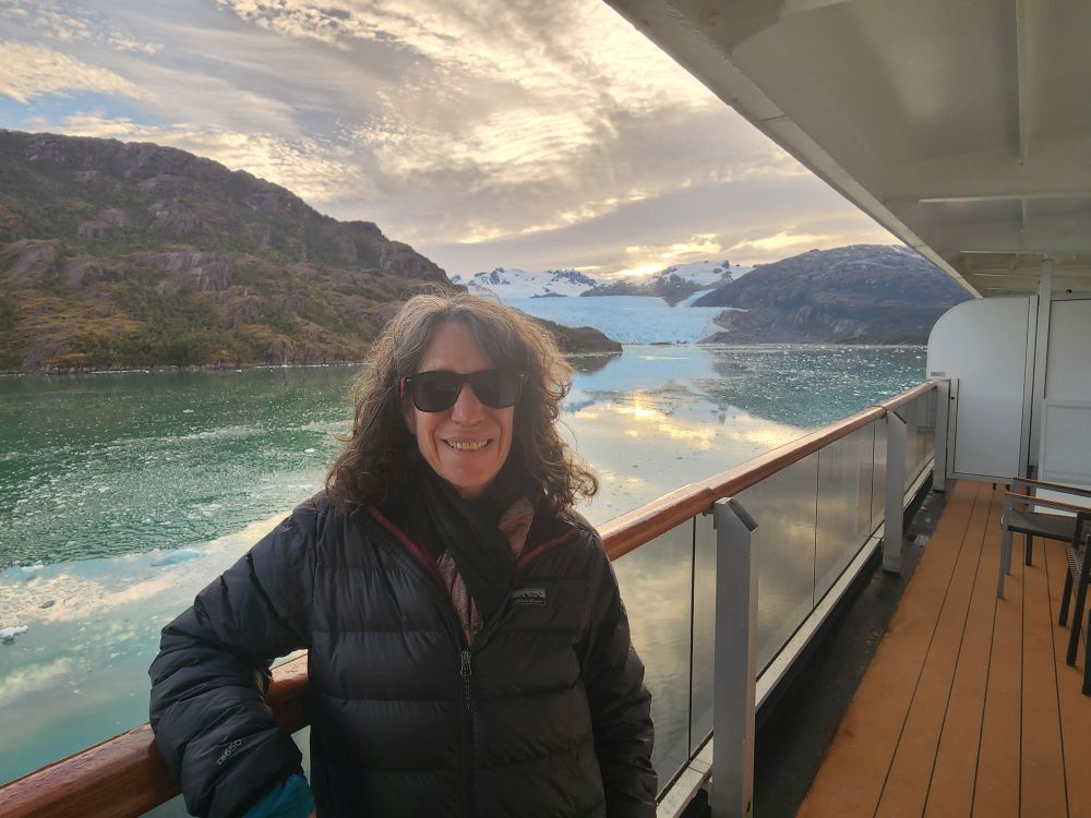 Back on the balcony for our pre-dinner drinks we are rewarded with more beautiful fjord views. Then it is off to dinner and tonight, the comedy/magician show which is quite good. The comic says he’s been performing on HAL for 40 years! No way – he doesn’t seem that old! Regardless, his show is great and keeps us guessing about how he did whatever he was doing all night long. And that is it for our evening. Punta Arenas tomorrow.
