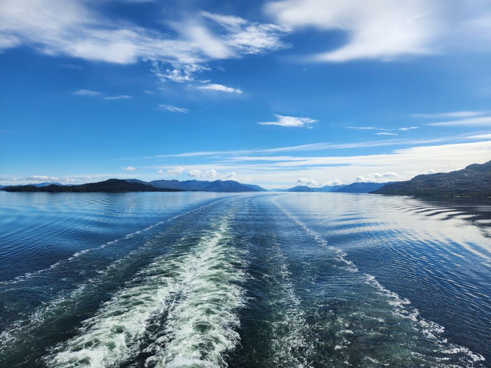 After the talk, I spend the afternoon blogging while Ed spends his time on the promenade deck walking – and stopping occasionally to take in the gorgeous scenery through which we are passing.