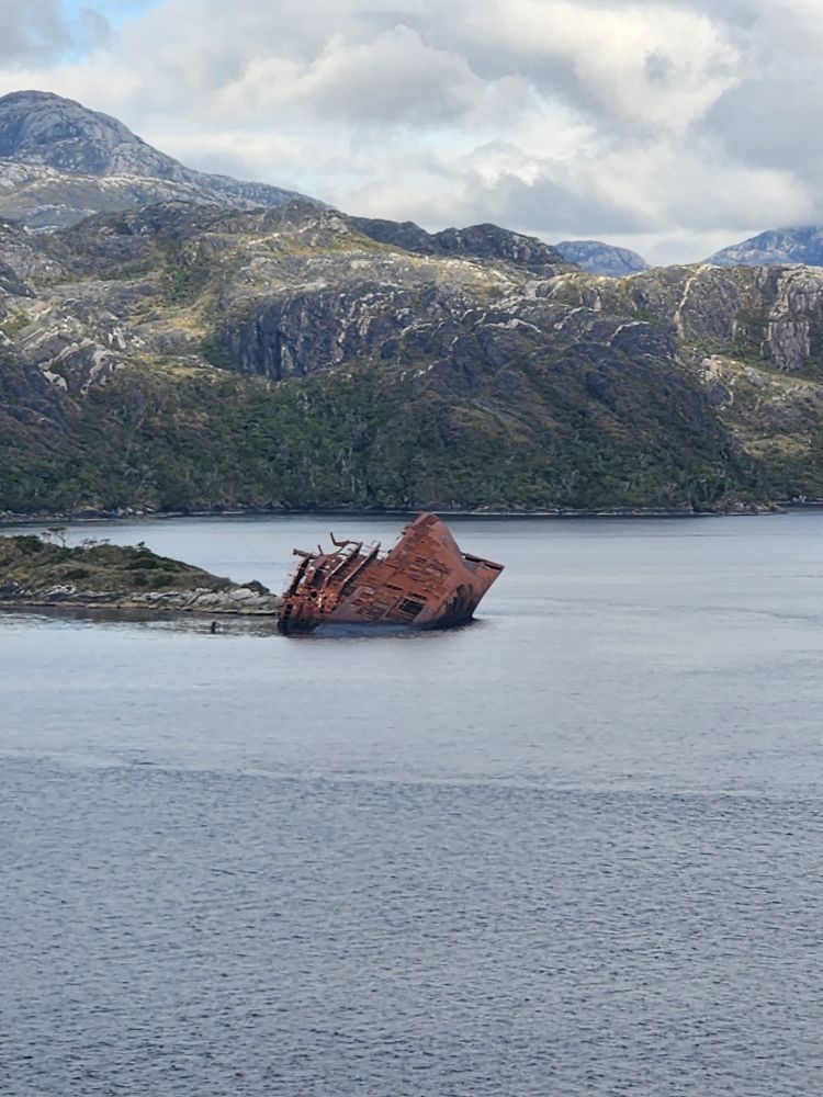 Next it is the gym, then afterward as we are in the Lido bar we pass the cargo ship, Captain Leonidas, that wrecked in the Messier Canal. In 1968, the captain of the ship tried to deliberately sink it in an effort to claim insurance money, but ended up only grounding the ship – so no insurance money. The ship has remained there ever since, and has allegedly even been used as target practice for the Chilean navy. Great story – but even greater pictures!