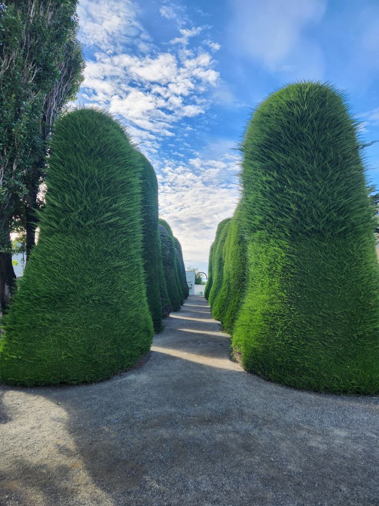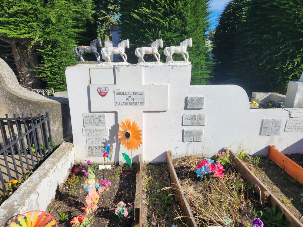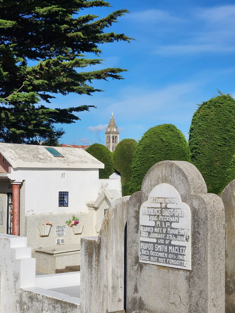 We backtracked over to Cemeterio Municipal Sara Braun, reputed to be one of the most beautiful cemeteries in the world. And it doesn’t disappoint. Laid out in grid fashion, almost like a city plan, we wandered down pathways lined with those amazing pines or firs or some sort of bush/tree-type thing that are sort of conical shaped. We pass the central area with the mausoleum of Jose Menedez who was a livestock and shipping businessman, then the grave of Adolf Andressen, captain of a whaling ship recognized for hoisting the first Chilean flag in the Antarctic continent.