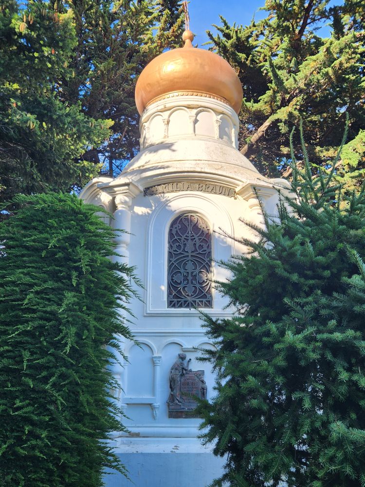 More mausoleums, more interesting graves, with the photos of the deceased, and on to Sara Braun’s Mausoleum, one of the grandest of them all in the cemetery.