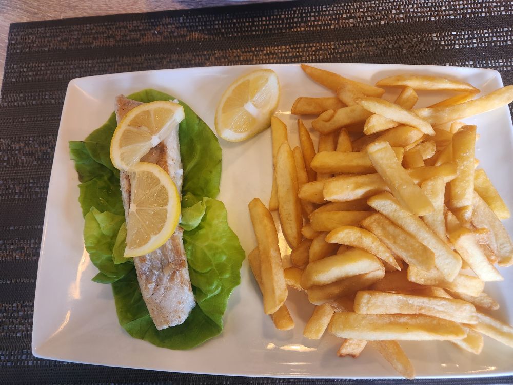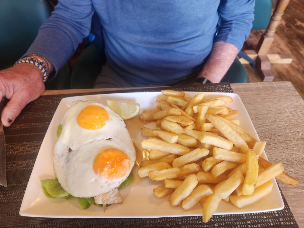 Finally we stumble upon Restaurante Azuca Beach which features a lot of fresh Merlusa – meaning we are all in! That fish is great. The restaurant is very cute, but small and narrow with booths already close to filled up. But the server points to another room and says we can sit there, which is perfect! There is no one there – an no one comes in during our entire meal. Everyone is jam packed into the other teeny room. We have a lovely peaceful lunch of Merlusa and beer and wine, all on our own, while listening to the absurd conversations from the next room (they were that loud!).